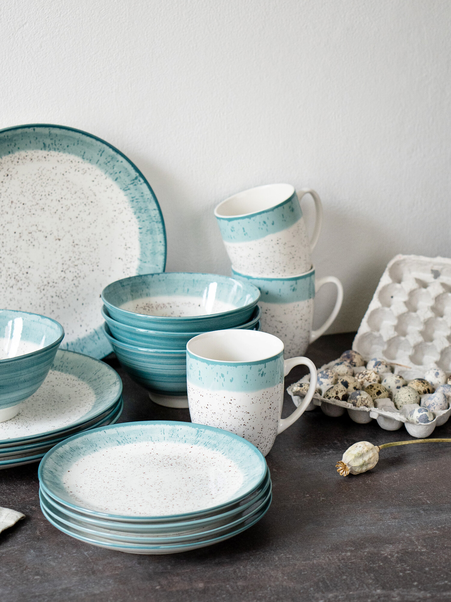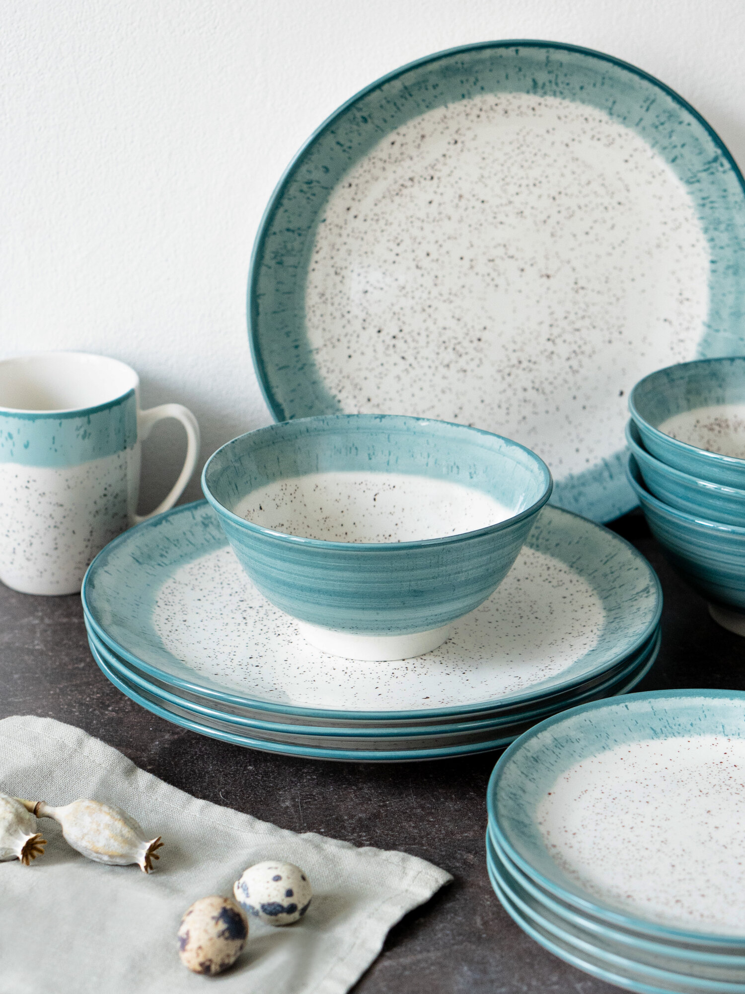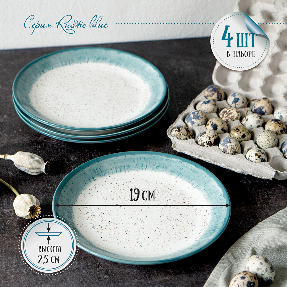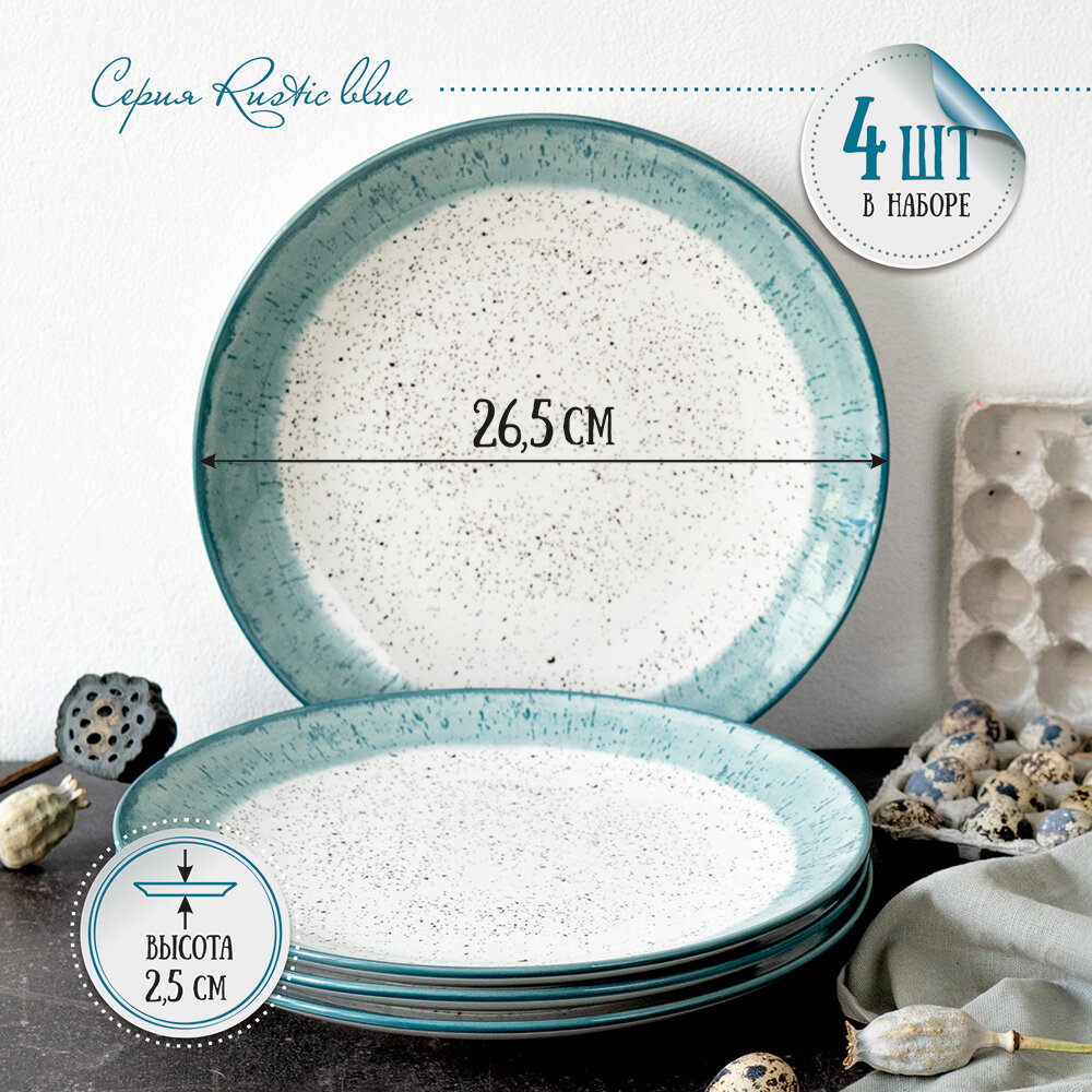 Купить Набор посуды столовой на 4 персоны 16 предметов Rustic blue фарфор. Столовый сервиз обеденный