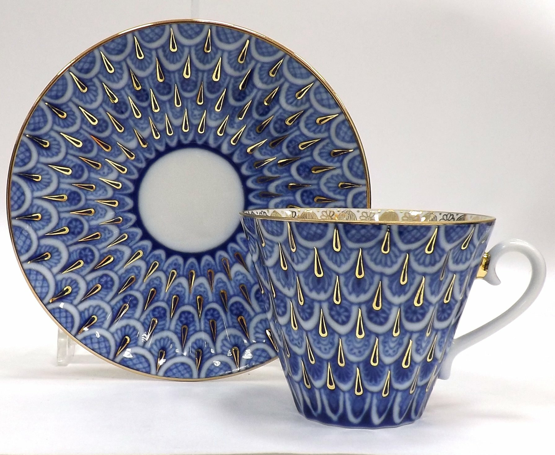 Купить Чайная пара 235 мл. Императорский фарфоровый завод. Форма "Лучистая", рисунок "Незабудка". Твердый фарфор. Императорский фарфоровый завод ИФЗ ЛФЗ.
