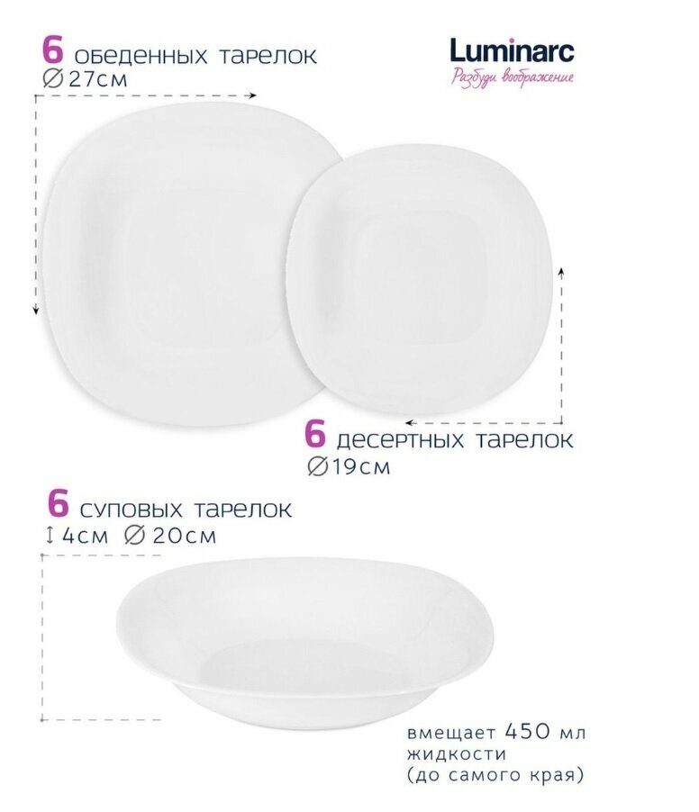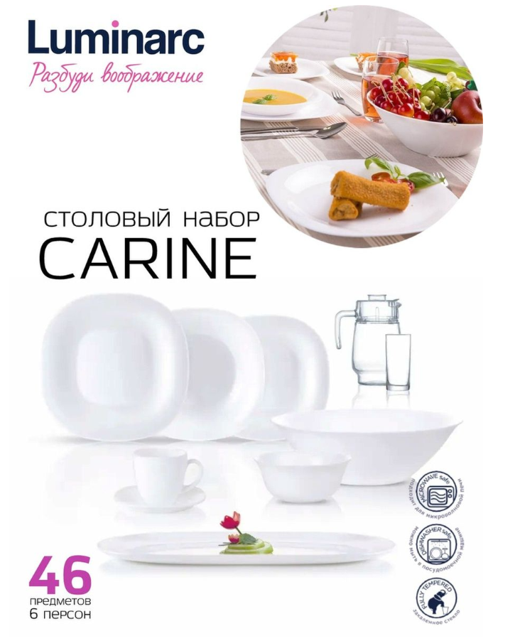 Сервиз Luminarc "Carine White", ударопрочное закаленное стекло, 46 предметов