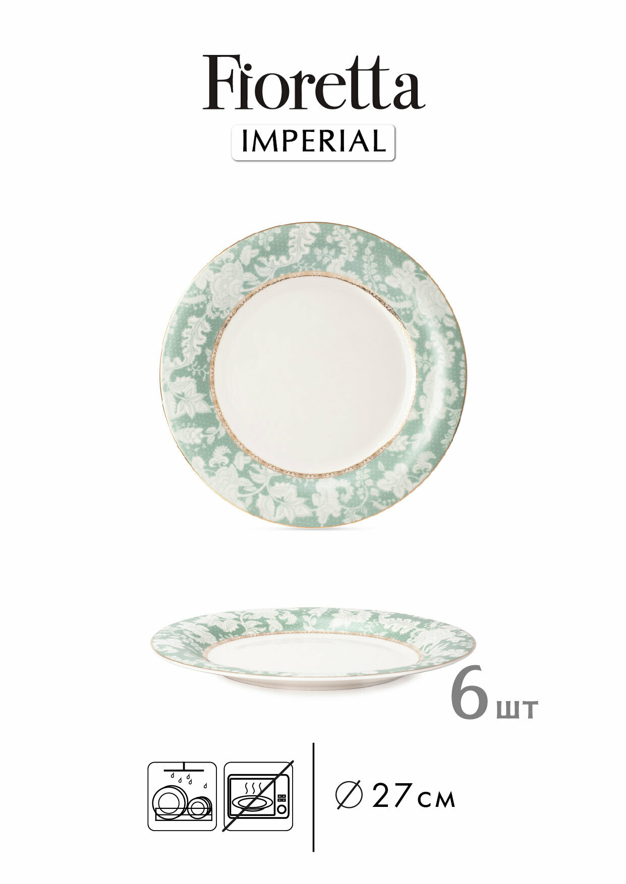 | Комплектация | 6 обеденных тарелок 27 см 6 суповых тарелок 22 см 6 десертных тарелок 19 см |