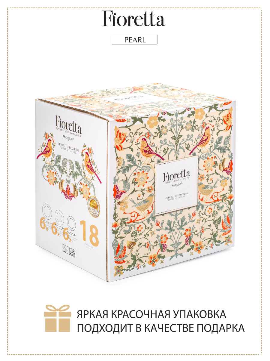 Набор столовой посуды Fioretta PEARL 18 предметов, 6 персон, фарфоровый сервиз