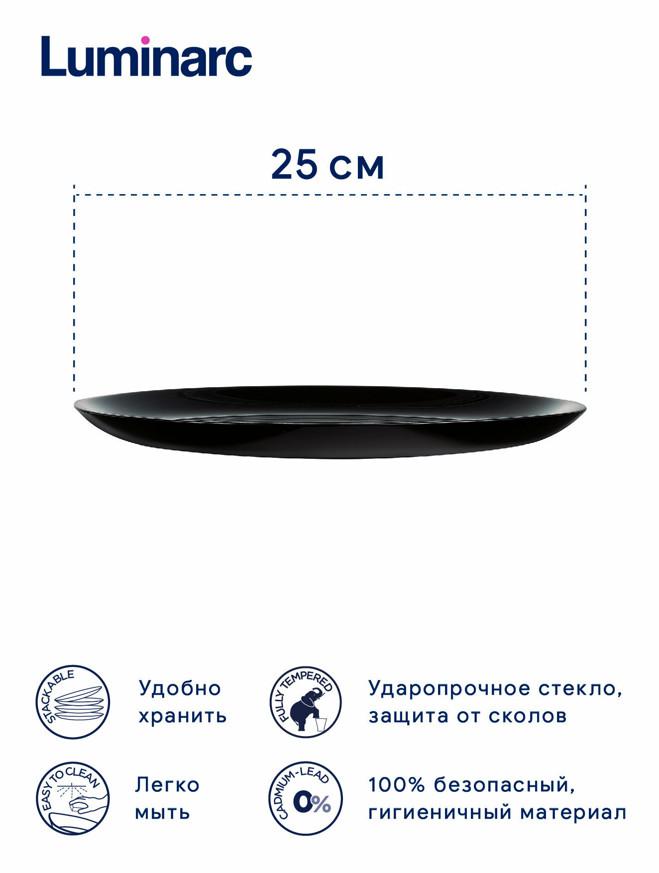 Тарелка обеденная Luminarc Diwali Black плоская, 25 см