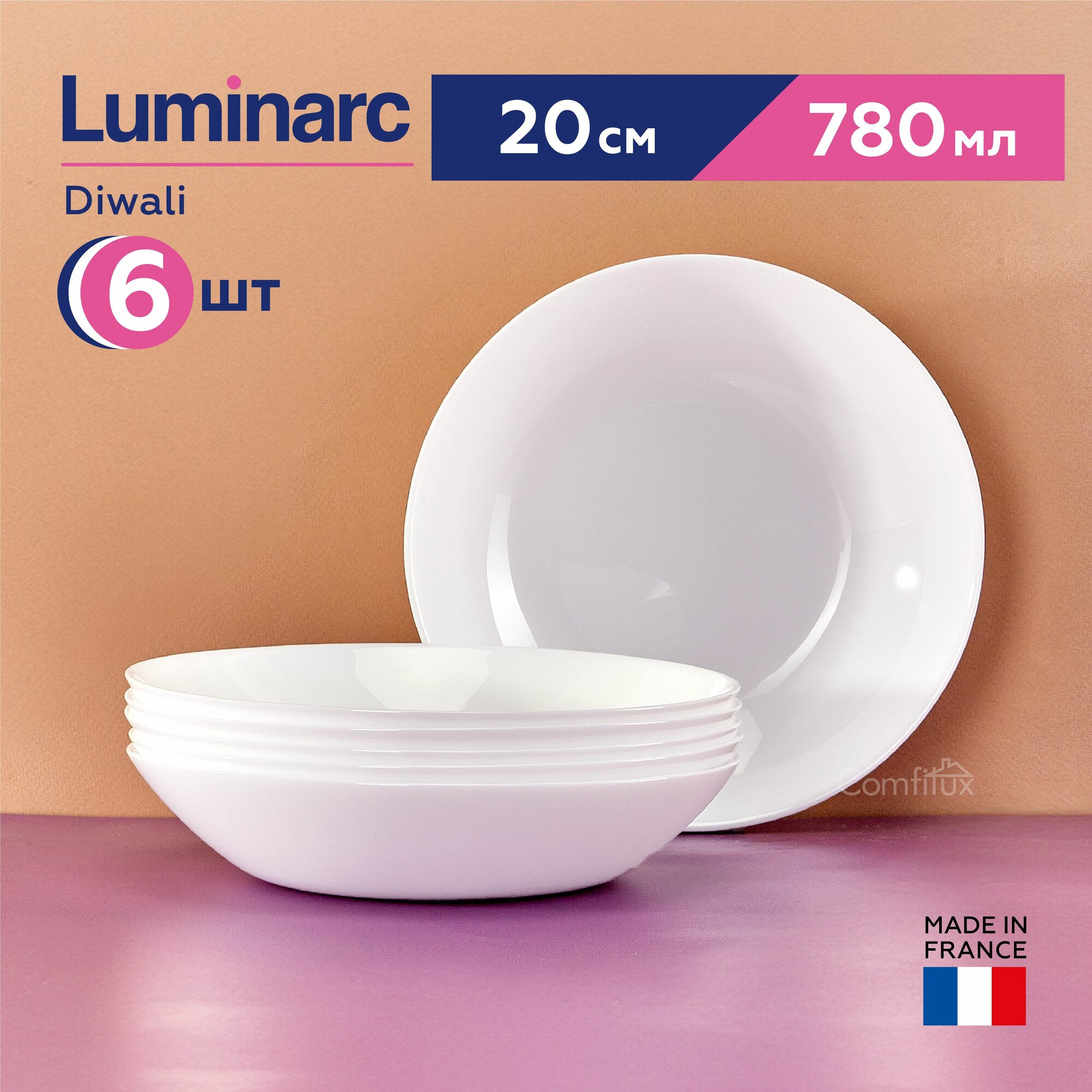 Набор суповых тарелок Luminarc DIWALI, 780 мл, d=20 см, стеклокерамика, 6 шт, цвет белый