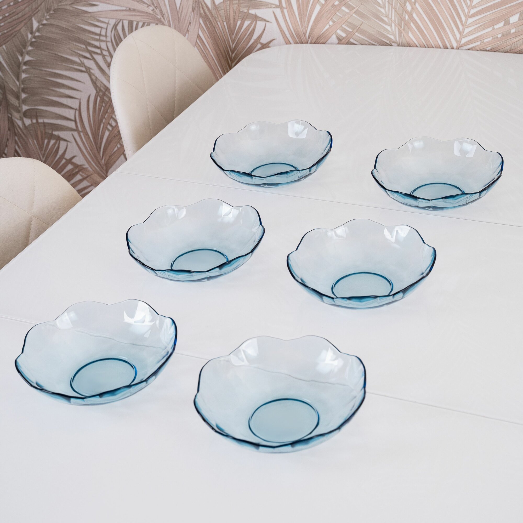 Тарелки набор из силикатного стекла Diamante mare, салатники глубокие, 13 см 6 шт. 440 мл
