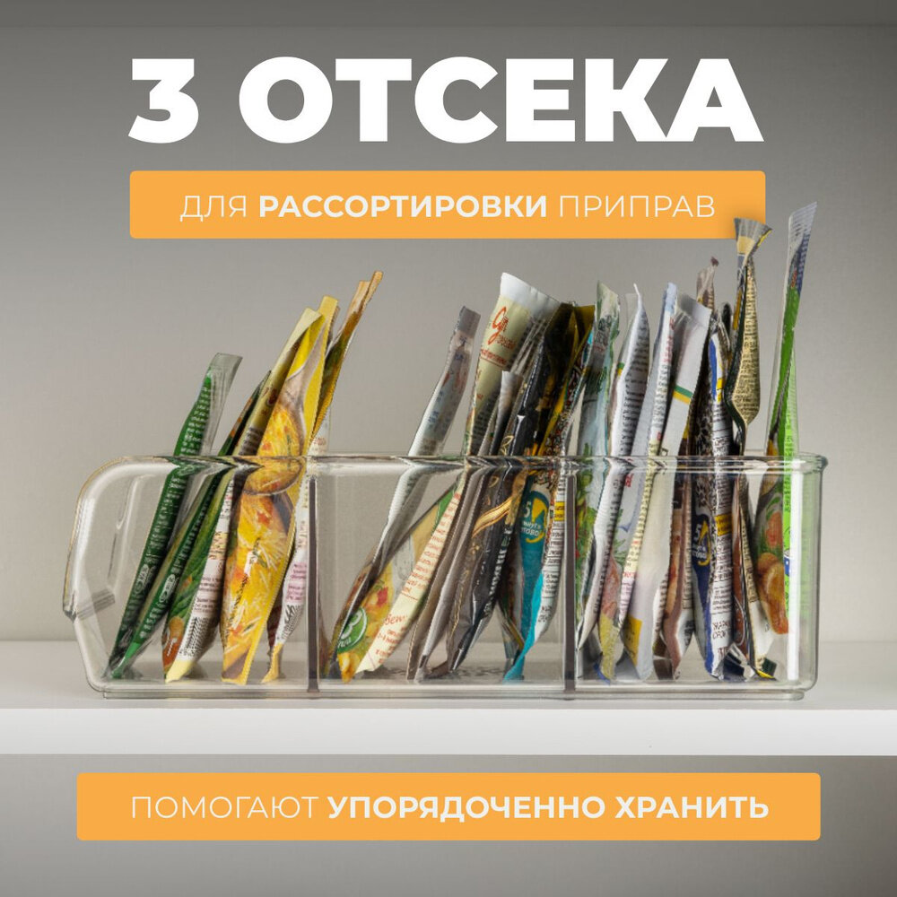 | Дополнительная информация | Три вместительных отсека разной ширины позволяют рассортировать специи по назначению. |
