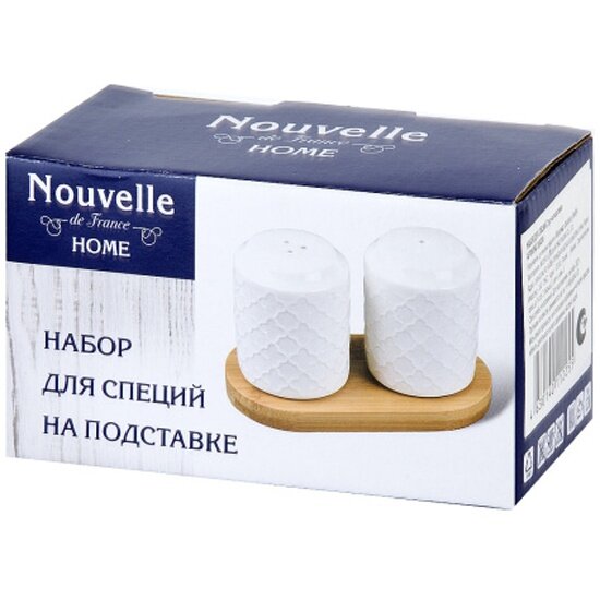 Набор 3 предмета Nouvelle "Naturel" солонка, перечница, подставка 12.5х6.5х7.5см, фарфор, бамбук