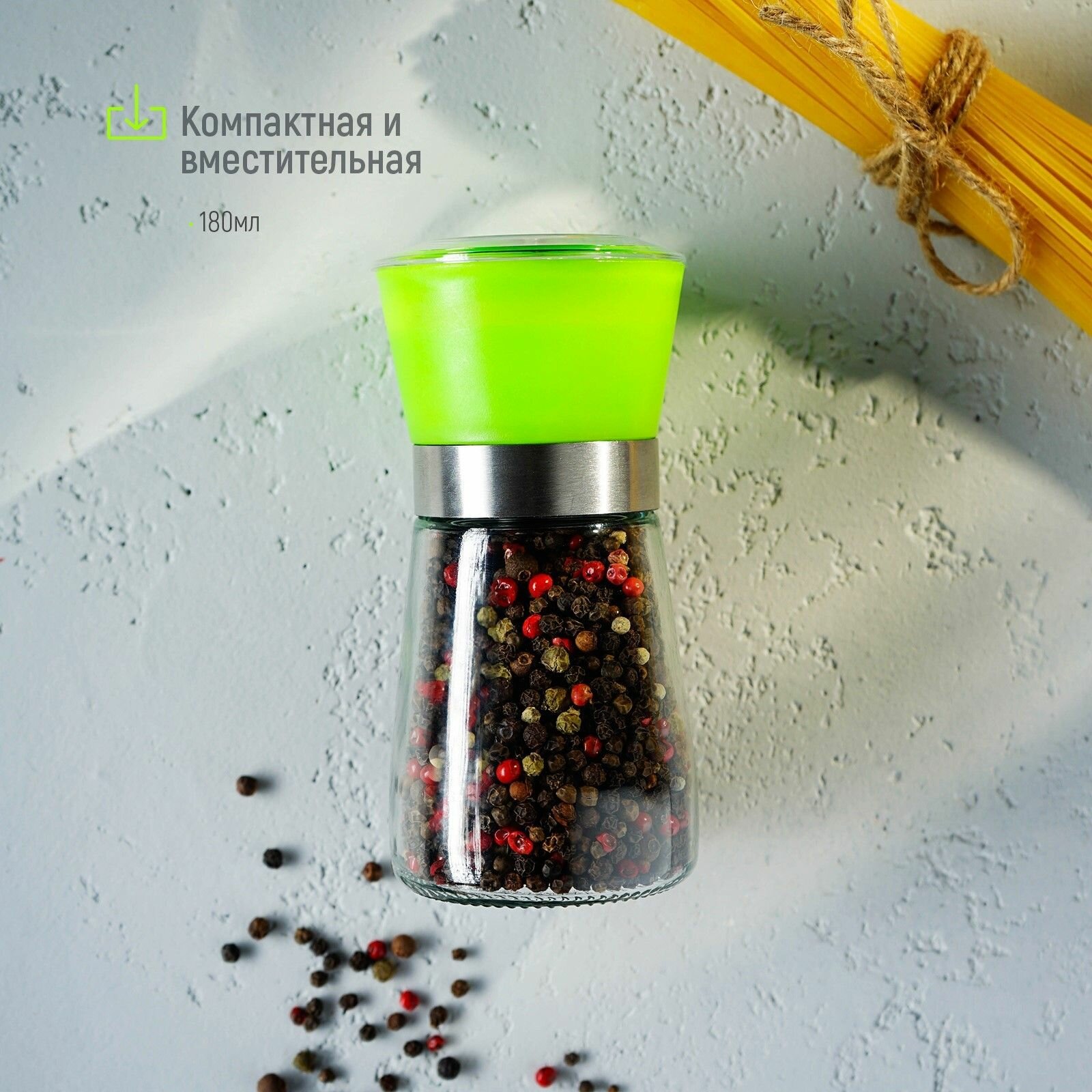 Мельница для специй Доляна «Модерн», 180 мл, 6,5×13 см, цвет зелёный