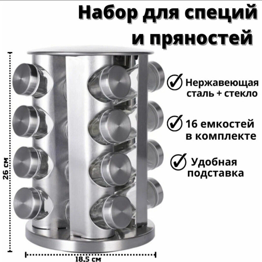 Набор для специй на вращающейся подставке 16 банок интересное: