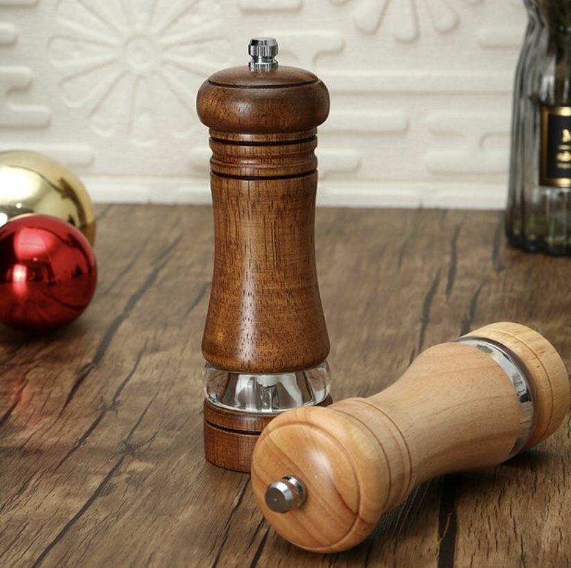 Мельница для специй из натурального дерева с прозрачной вставкой, 17 см. темная интересное: