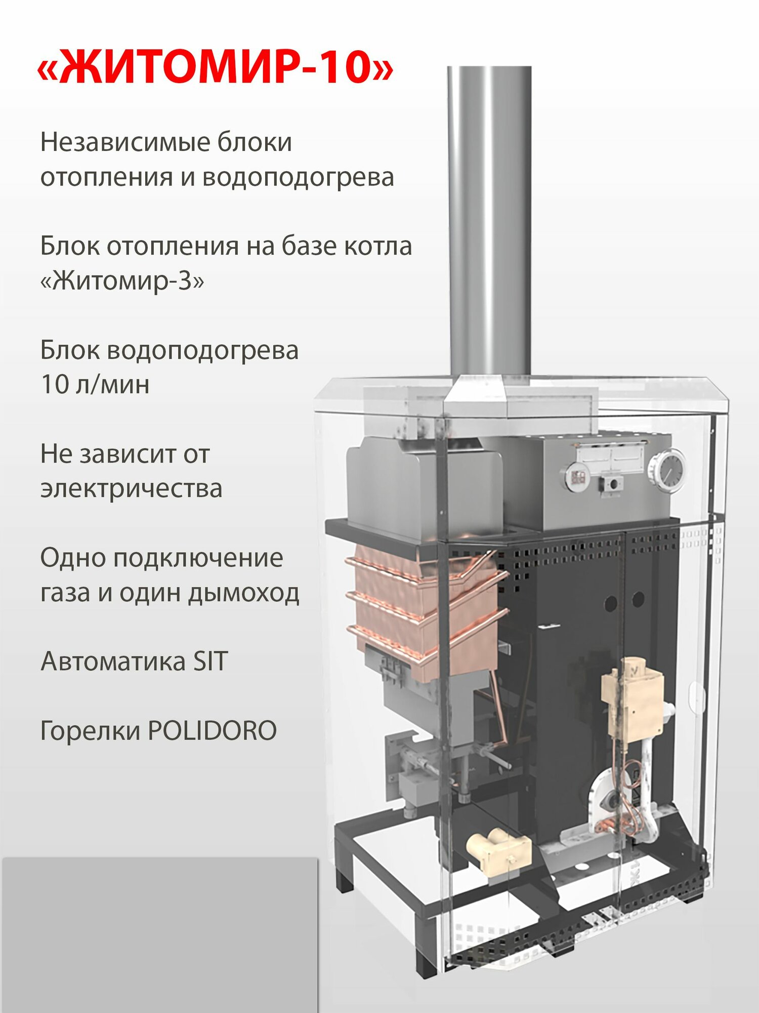 Газовый котел + газовая колонка Житомир-10 КС-Г-12СН Открытый (атмосферный)напольный двухконтурный интересное: