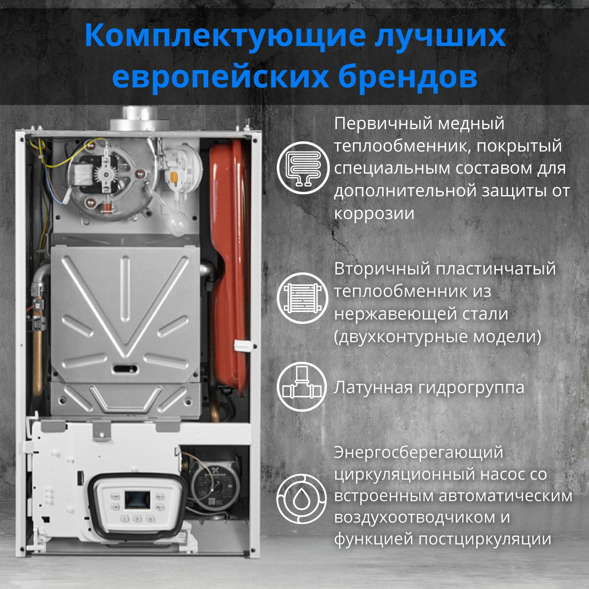 | Материал первичного теплообменника | медь |