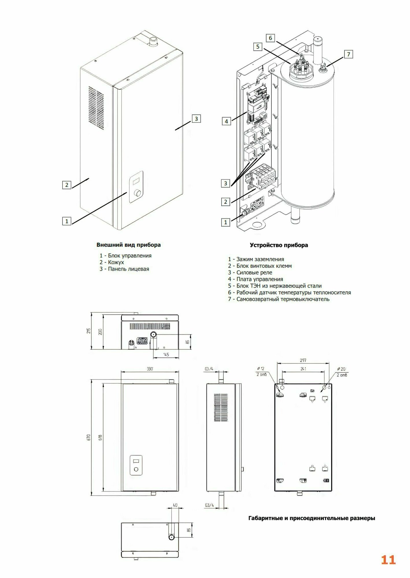 | Патрубок подключения контура отопления | 3/4" |