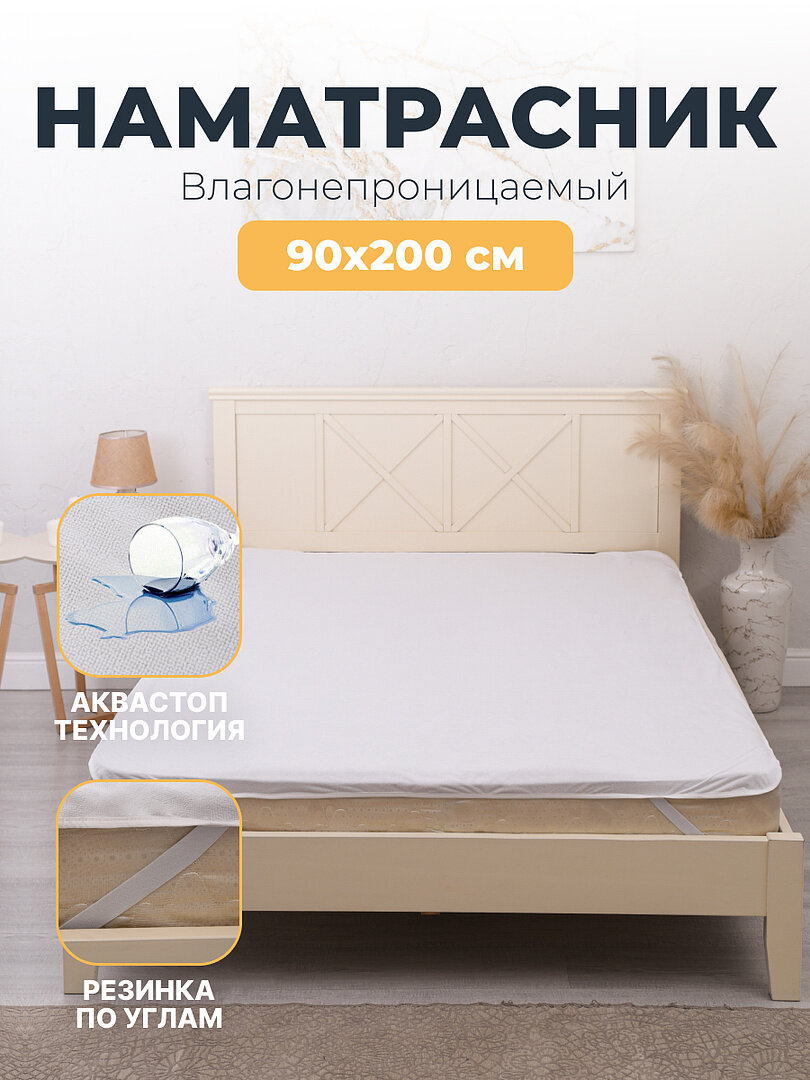 Наматрасник махровый 90х180 , AVICTORY непромокаемый с кантом и резинкой по углам