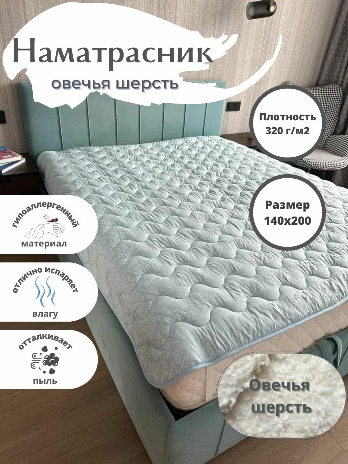 Наматрасник из овечьей шерсти 140х200 см интересное: