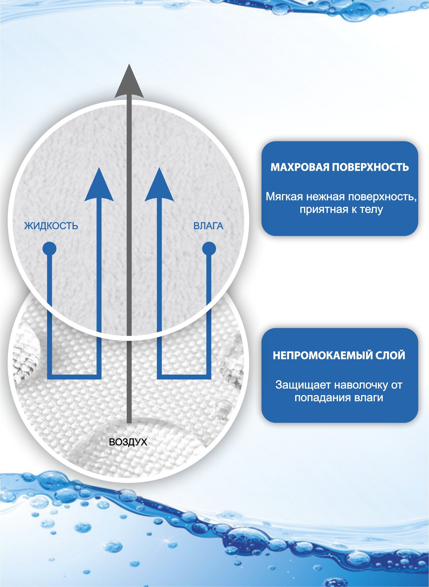 Наматрасник непромокаемый с резинками по углам, махра/мембрана 70х200