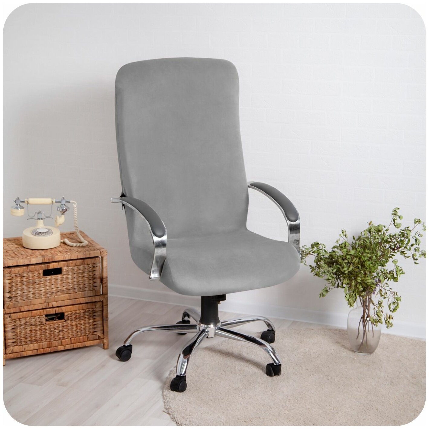 Чехол на компьютерное и офисное кресло Велюр серый размер L интересное: