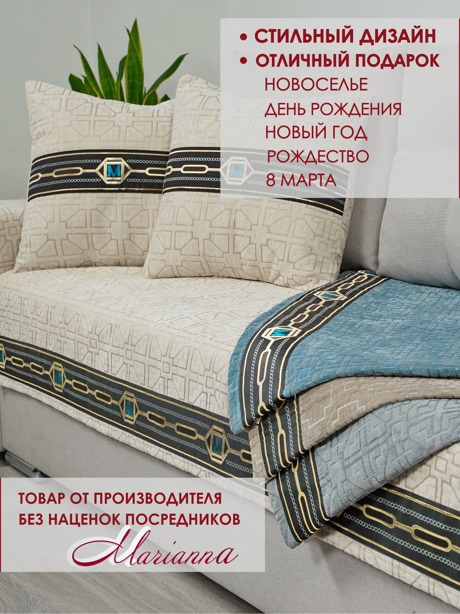 Накидка на диван антискользящая Marianna QUADRO 01 / 200х90 см интересное: