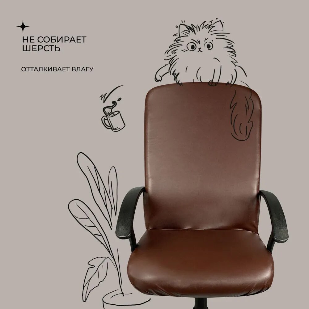 Купить Чехол на мебель для компьютерного кресла гелеос 535Л, размер L, кожа, темно-коричневый