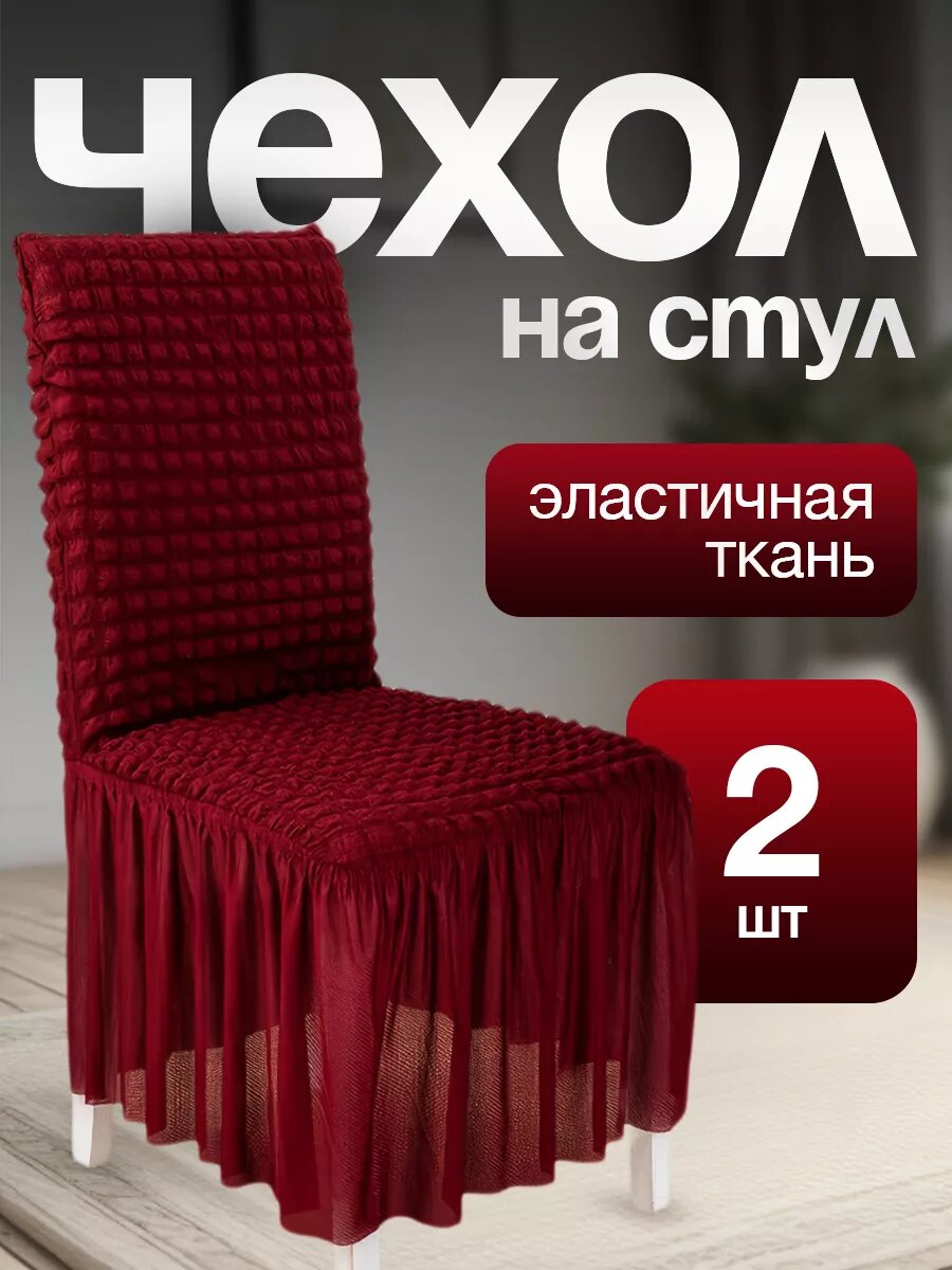 Купить Чехол для стульев с длинной юбкой бордовый 2 штуки комплект