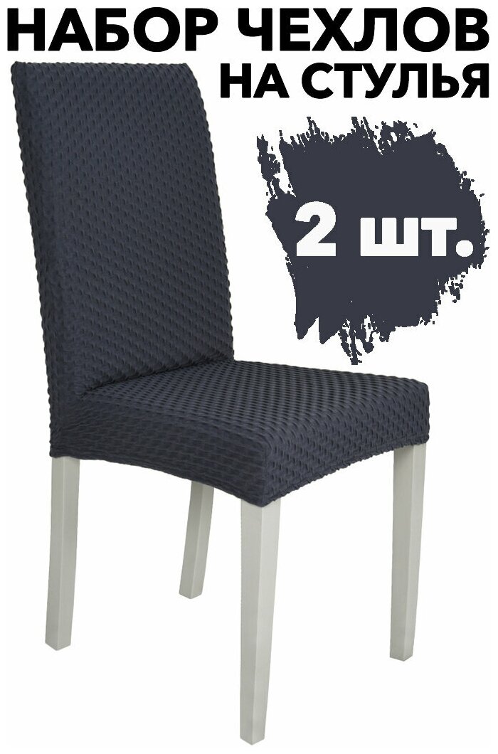 Купить Чехол для стула со спинкой без оборки фактурный набор 2 шт. Venera, цвет Антрацит