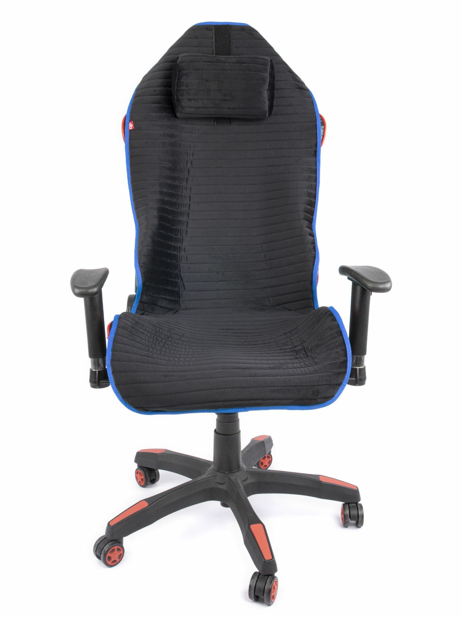 Купить Чехол (накидка) с подголовьем для компьютерного игрового кресла черный с синим кантом