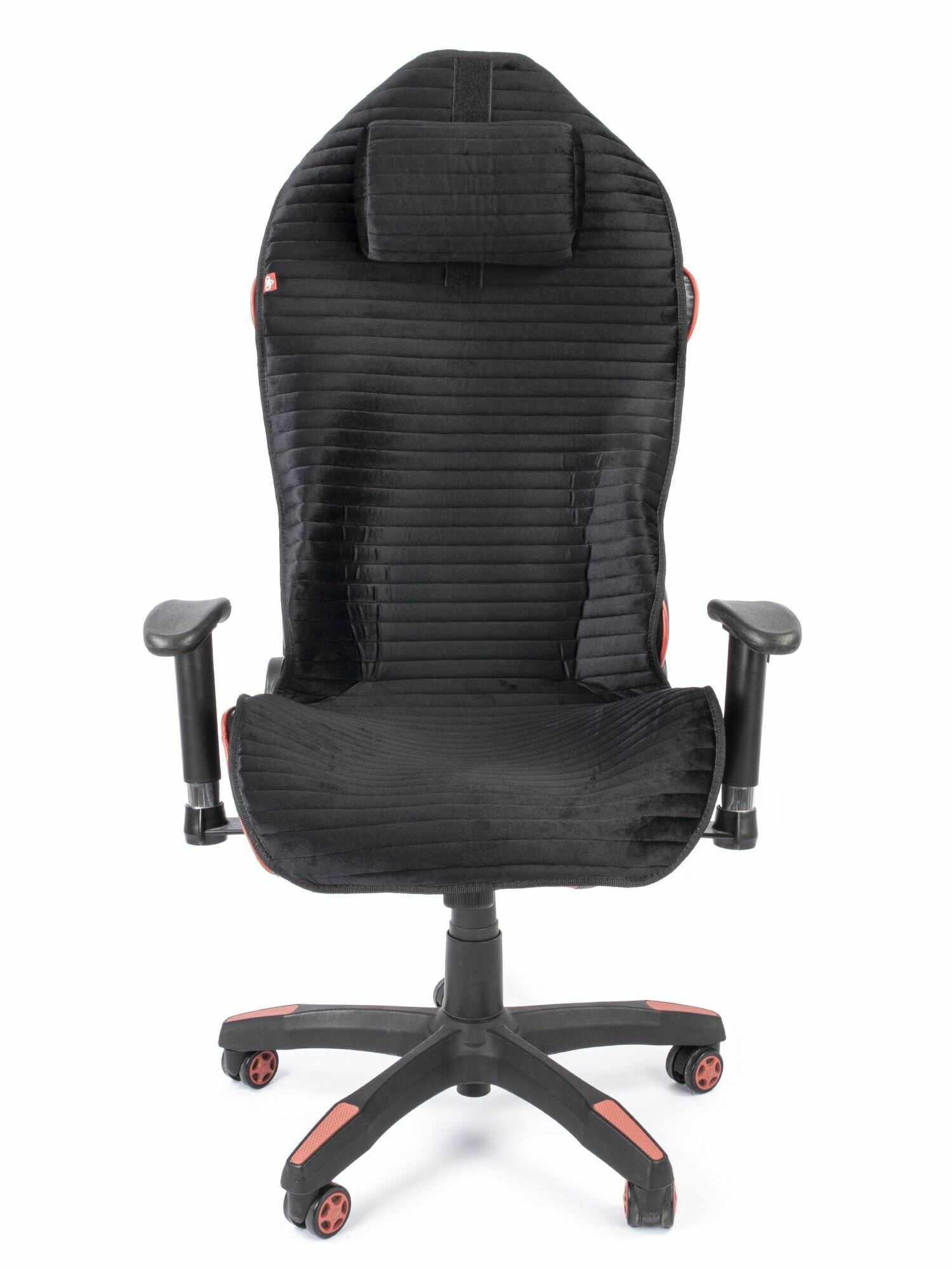 Чехол (накидка) с подголовьем для компьютерного игрового кресла черный с красным кантом