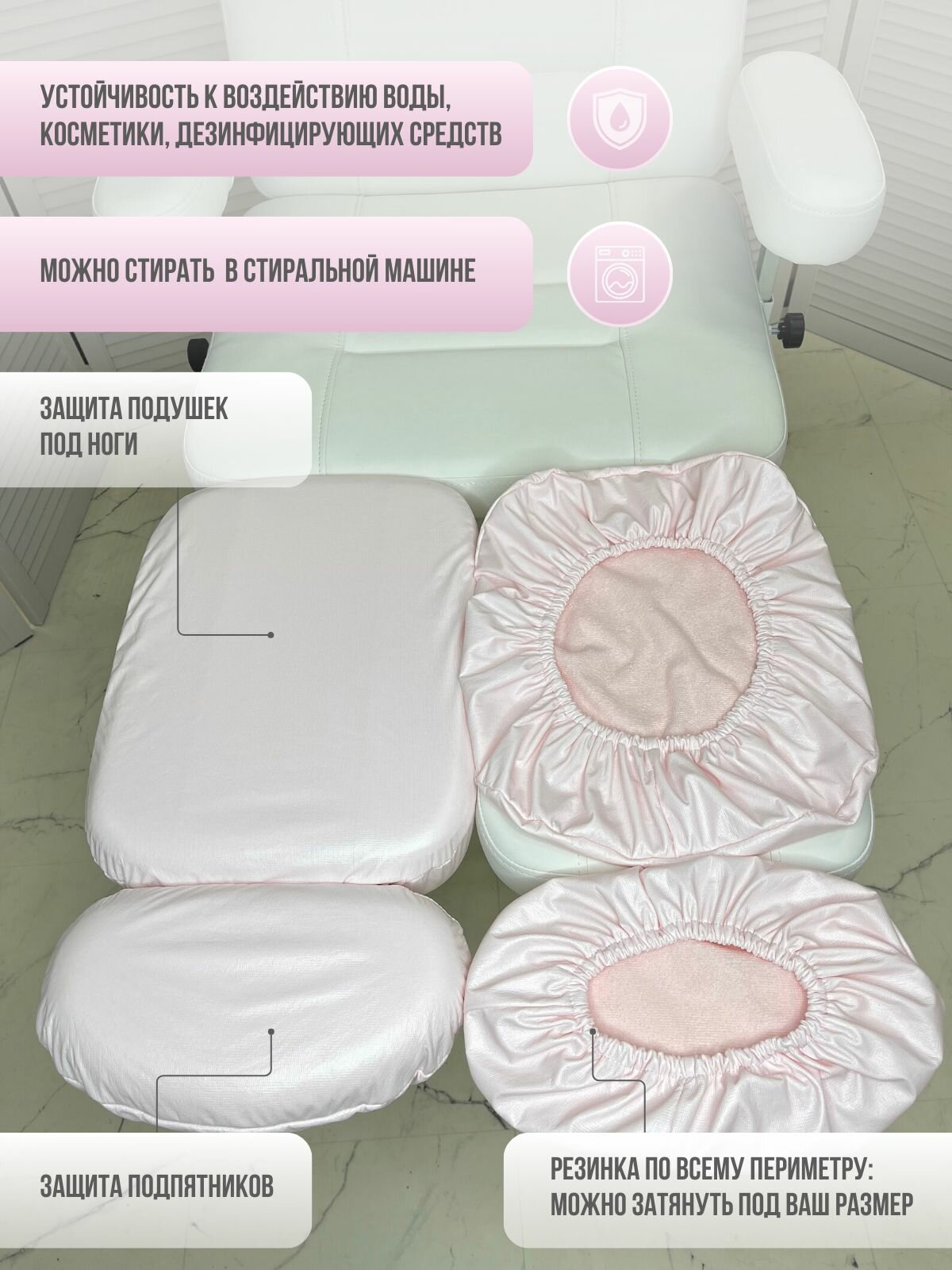 | Дополнительная информация | многоразовые чехлы, для спинки и сиденья педикюрного кресла |