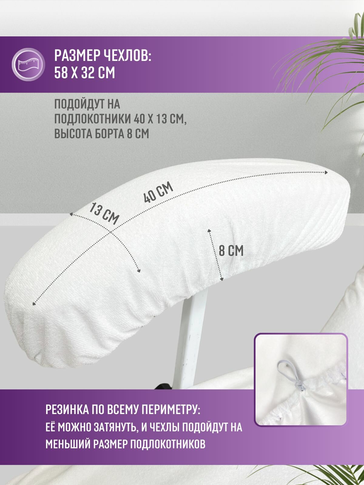 Купить Многоразовые двусторонние белые чехлы для подлокотников педикюрного и косметологического кресла, 2 шт