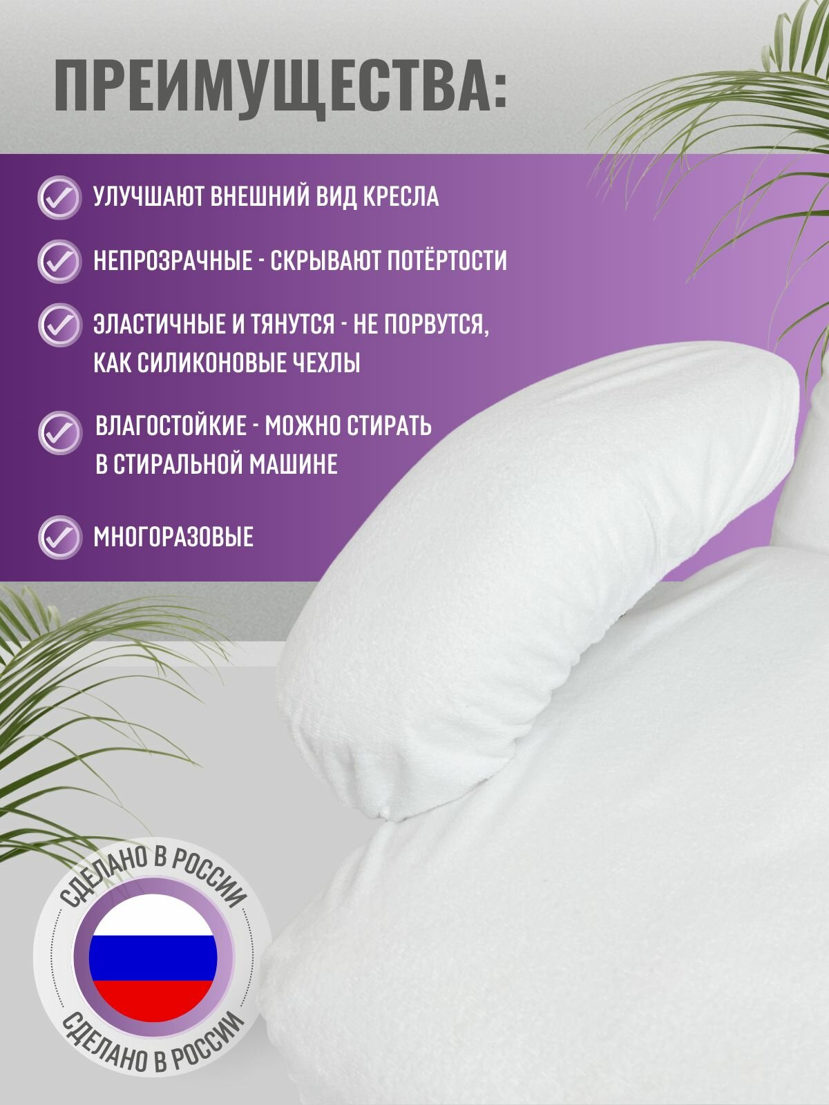 Able-table Комплект из 2 деталей белых чехлов на педикюрное кресло, махровые, непромокаемые, многоразовые, мулетон