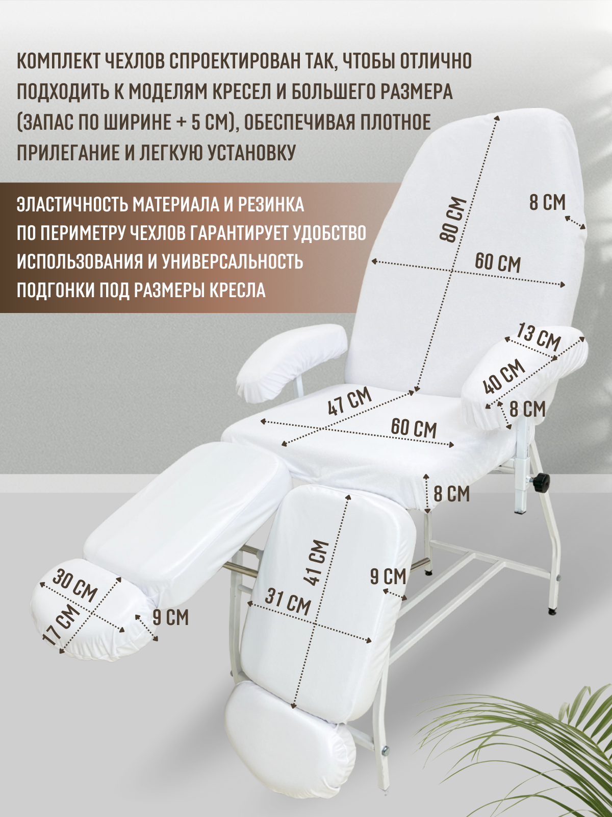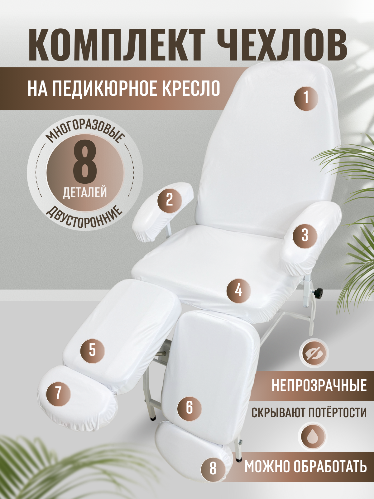 | Дополнительная информация | многоразовые чехлы, для спинки и сиденья педикюрного кресла |