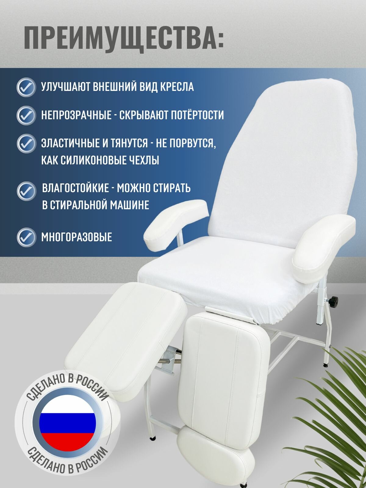 Купить Able-table Комплект из 2 деталей белых чехлов на педикюрное кресло, махровые, непромокаемые, многоразовые, мулетон