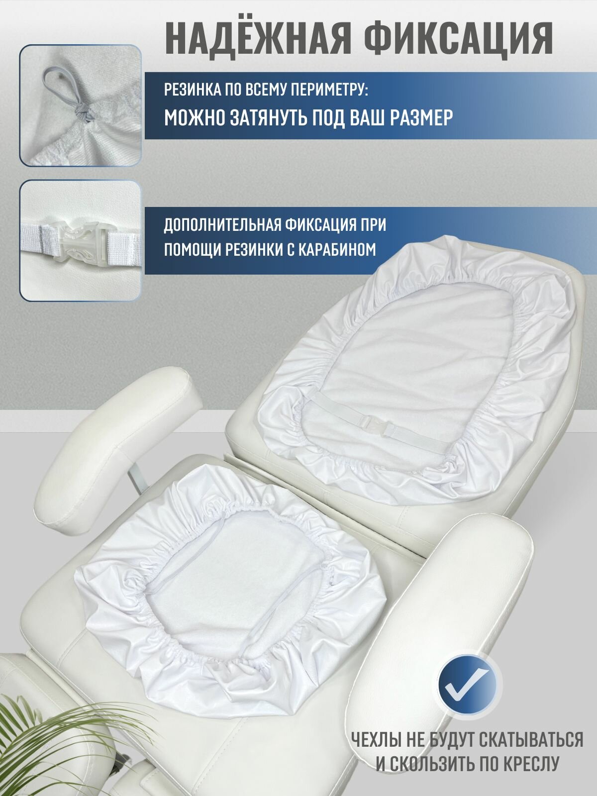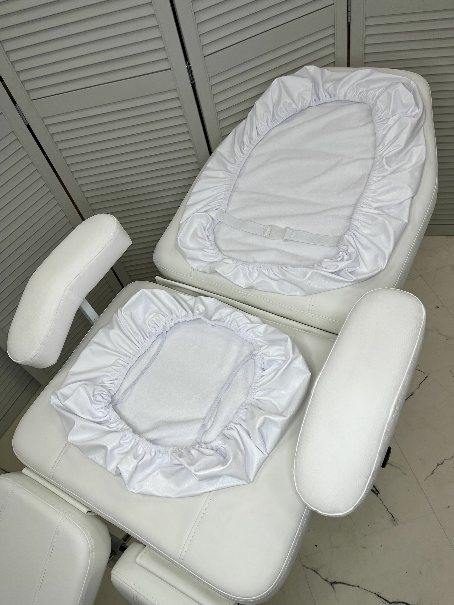 Able Table - Комплект белых махровых непромокаемых чехлов для педикюрного кресла