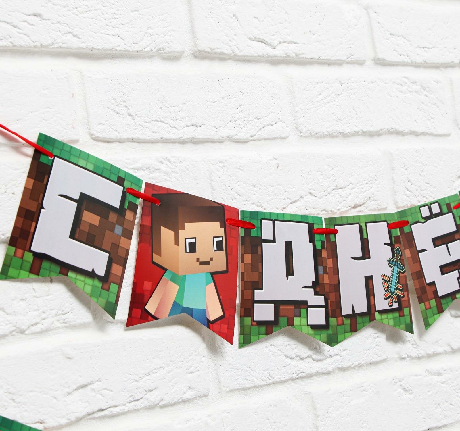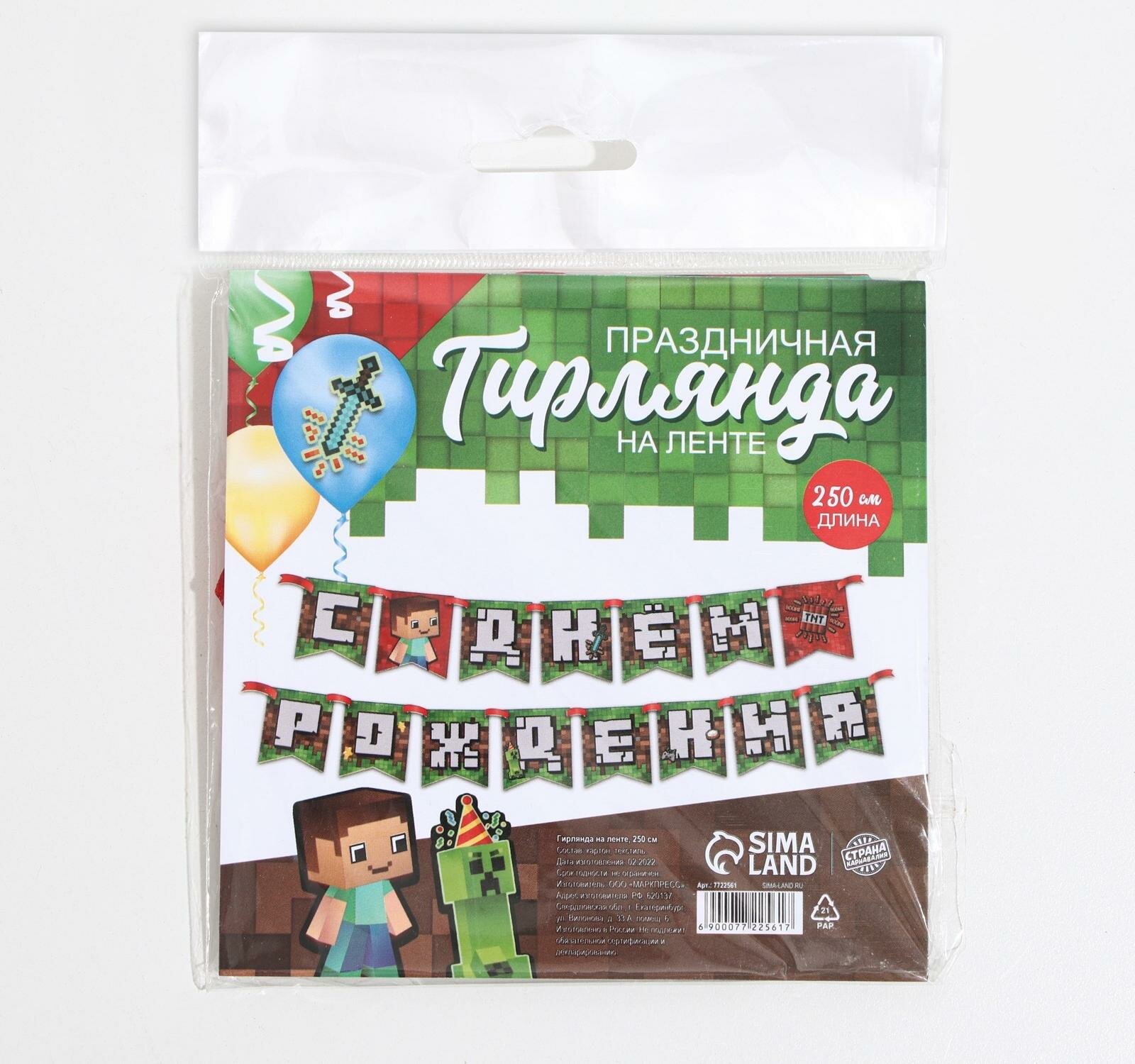 Гирлянда растяжка флажки Minecraft, С Днем Рождения, 250 см интересное: