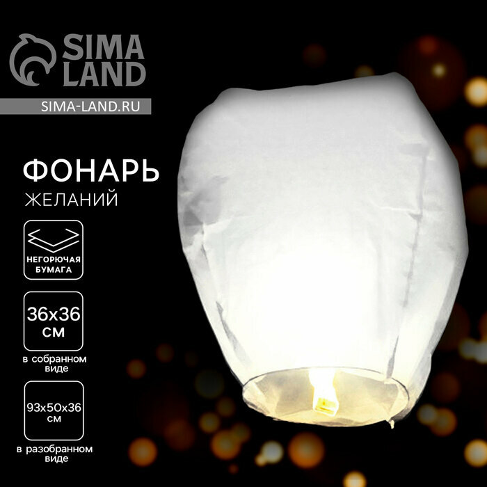 Небесный фонарь желаний, цвет белый, 93 см, из бумаги, Страна карнавалия
