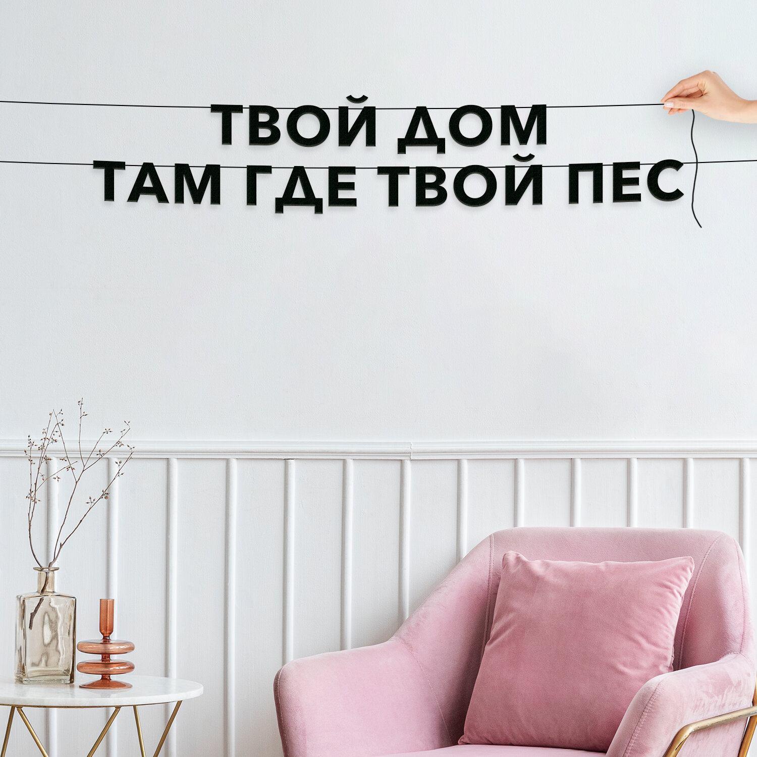 Декор интерьерный черные буквы, Про собак - “заведи собаку И МИР станет больше“, черная текстовая растяжка.