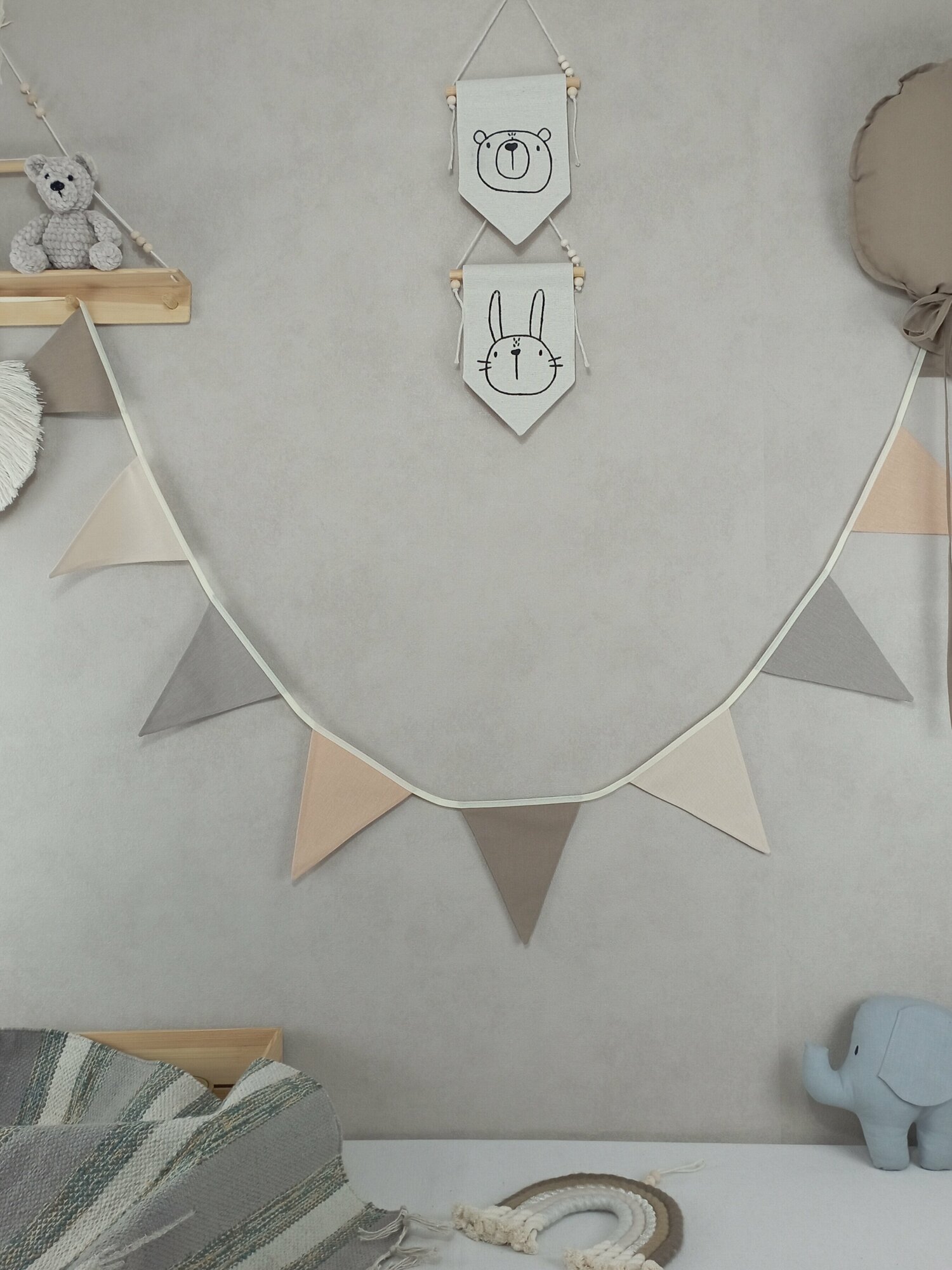 Флажки гирлянда из ткани \ Растяжка из хлопковых флажков бежевый.2 метра интересное: