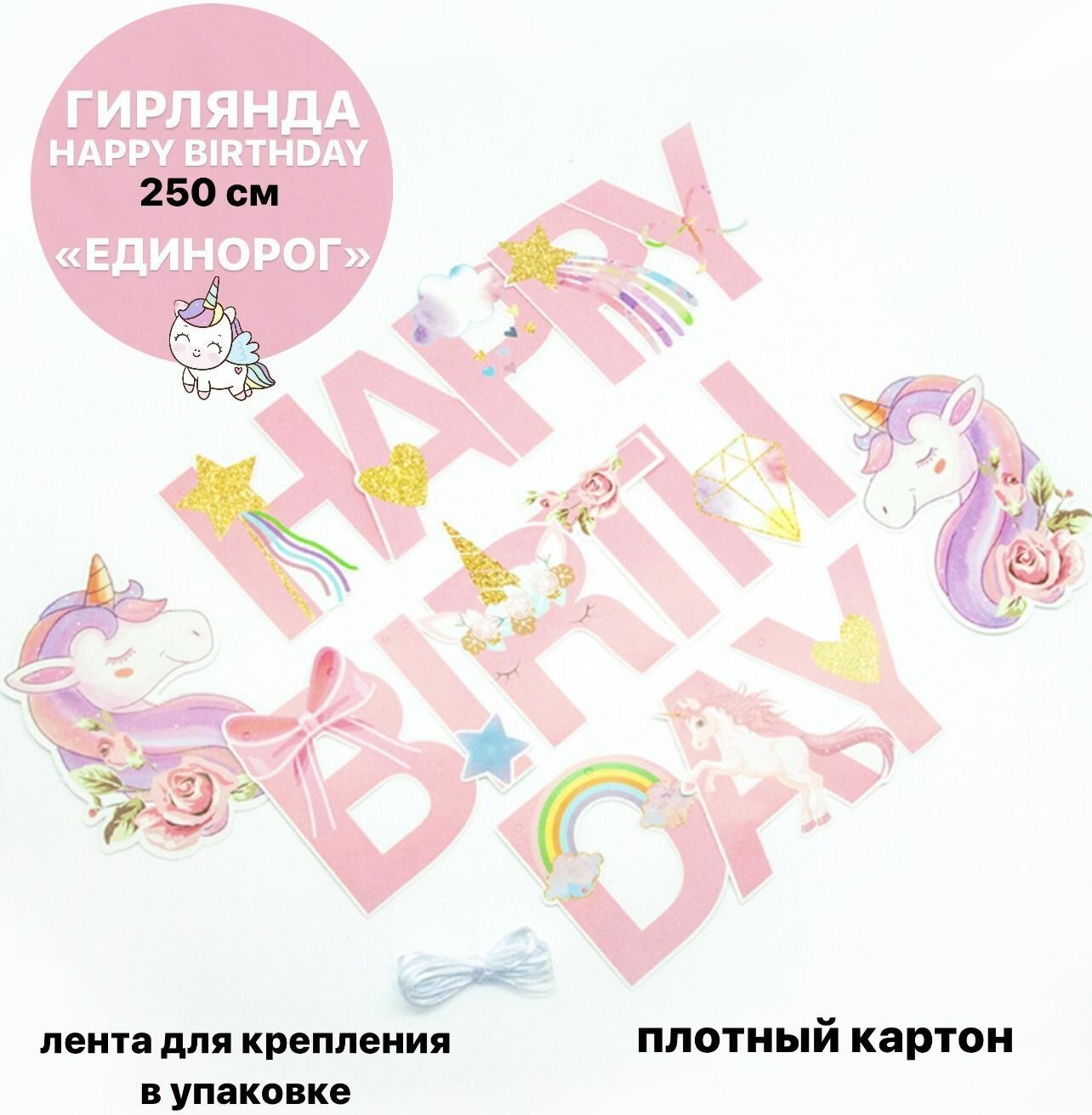 Купить Гирлянда растяжка Цветочные Единороги, розовая, 250 см