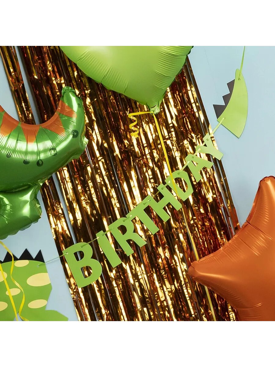 Купить Гирлянда Динозавр, Happy Birthday, Зеленый, 150 см, 1 шт.