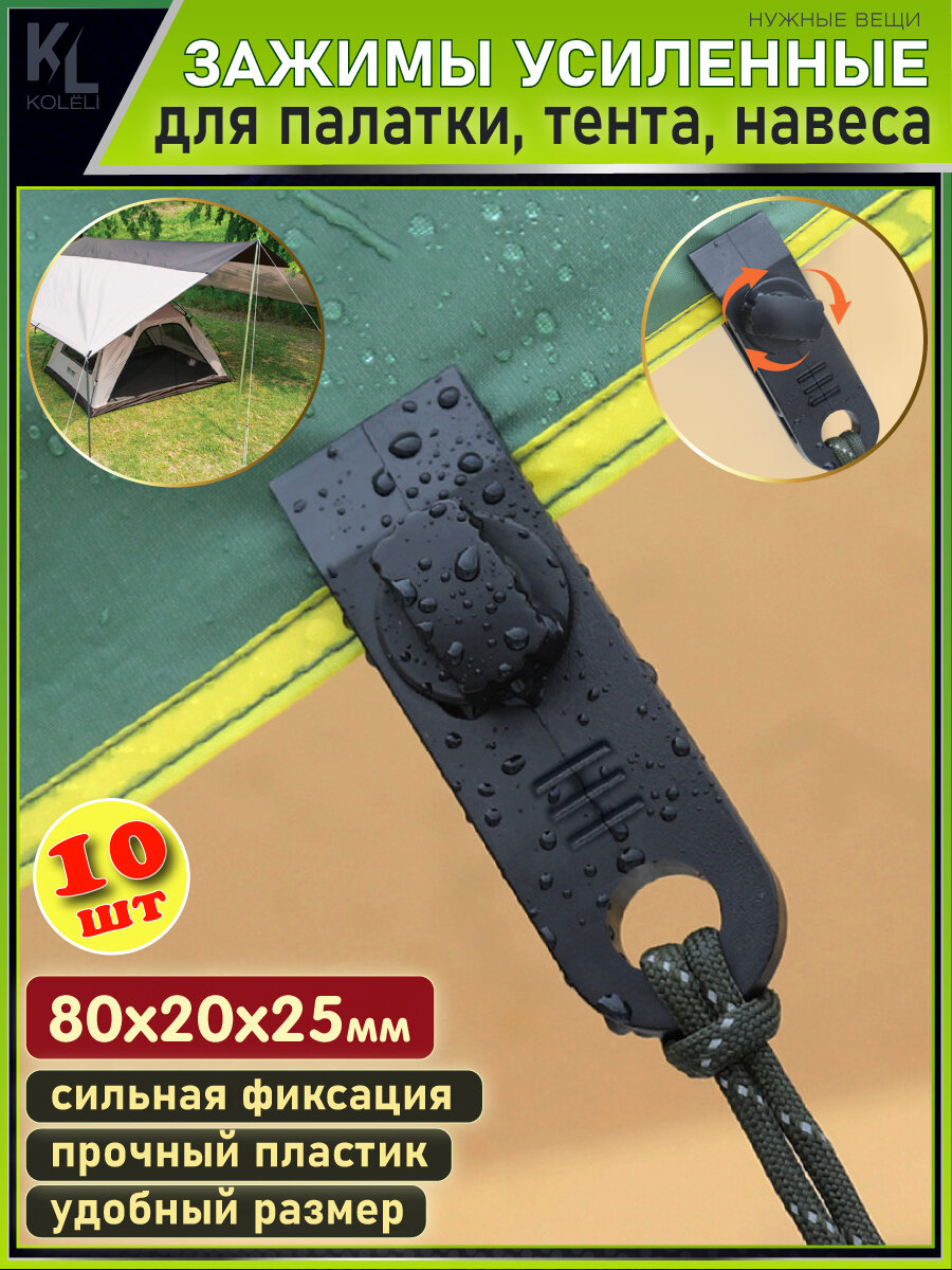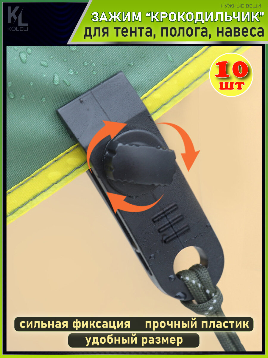 KoLeli / Зажим-прищепка "крокодильчик" / Комплект зажимов для брезента, для установки палатки, тента, 10 шт. интересное: