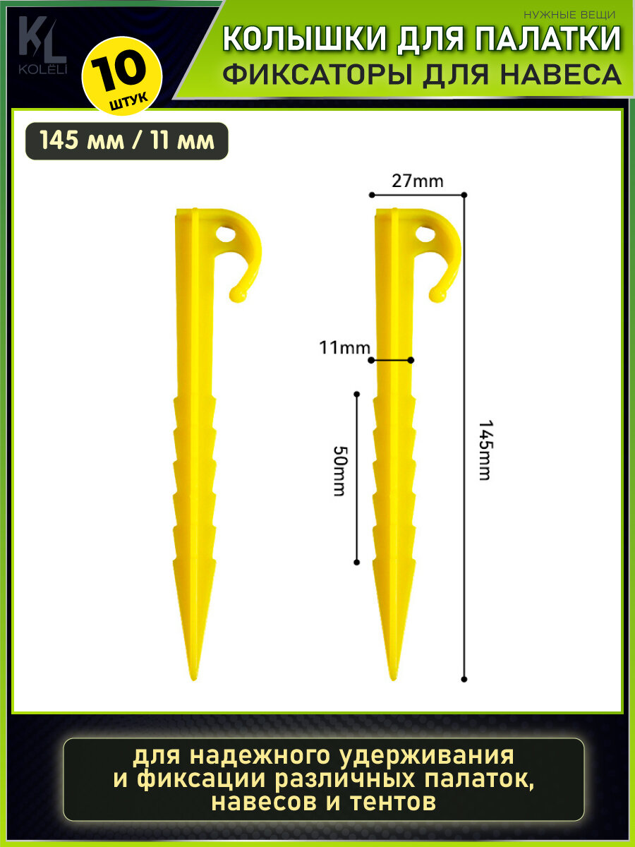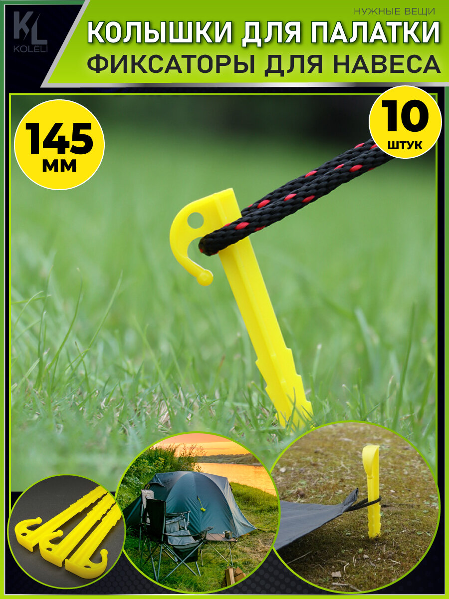 KoLeli / Колышки фиксаторы для палатки и тента, с крючком, 10 шт, желтые интересное: