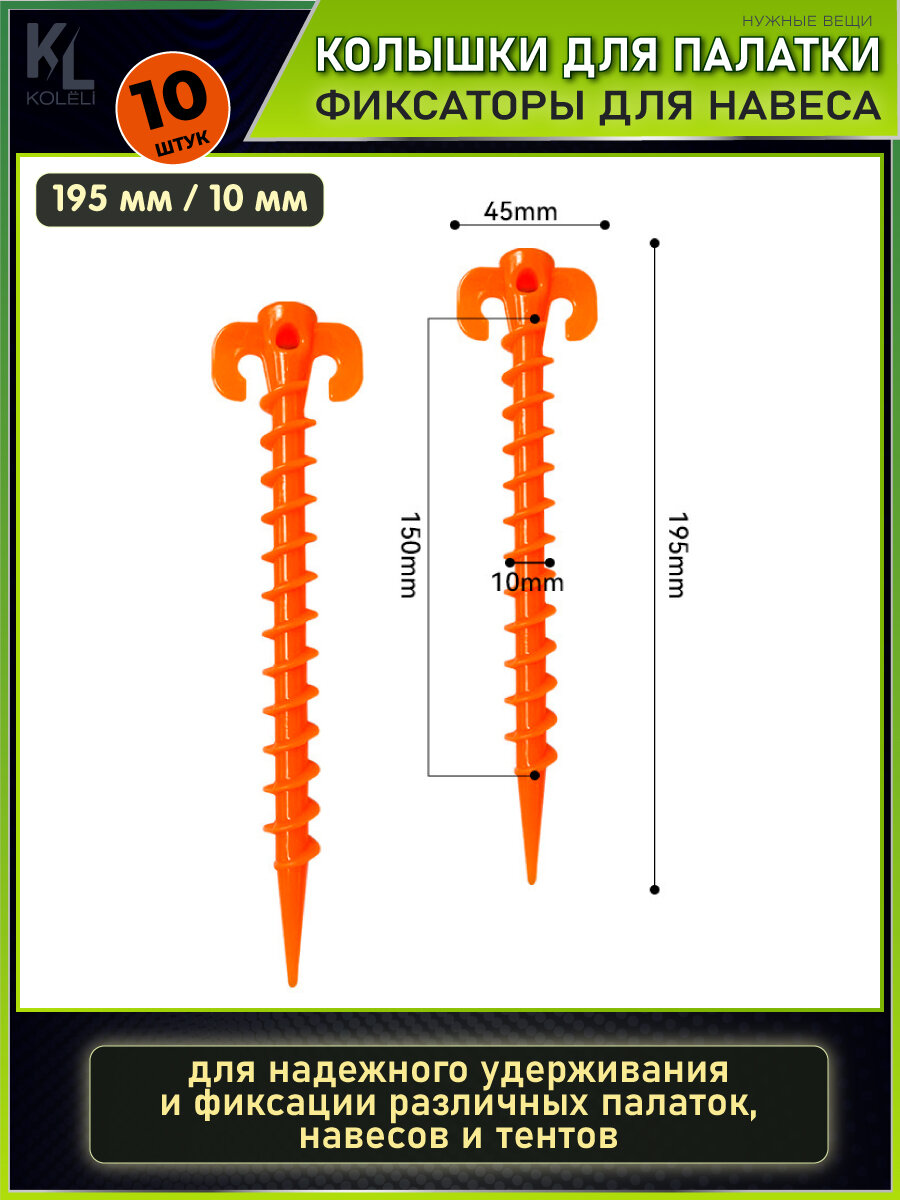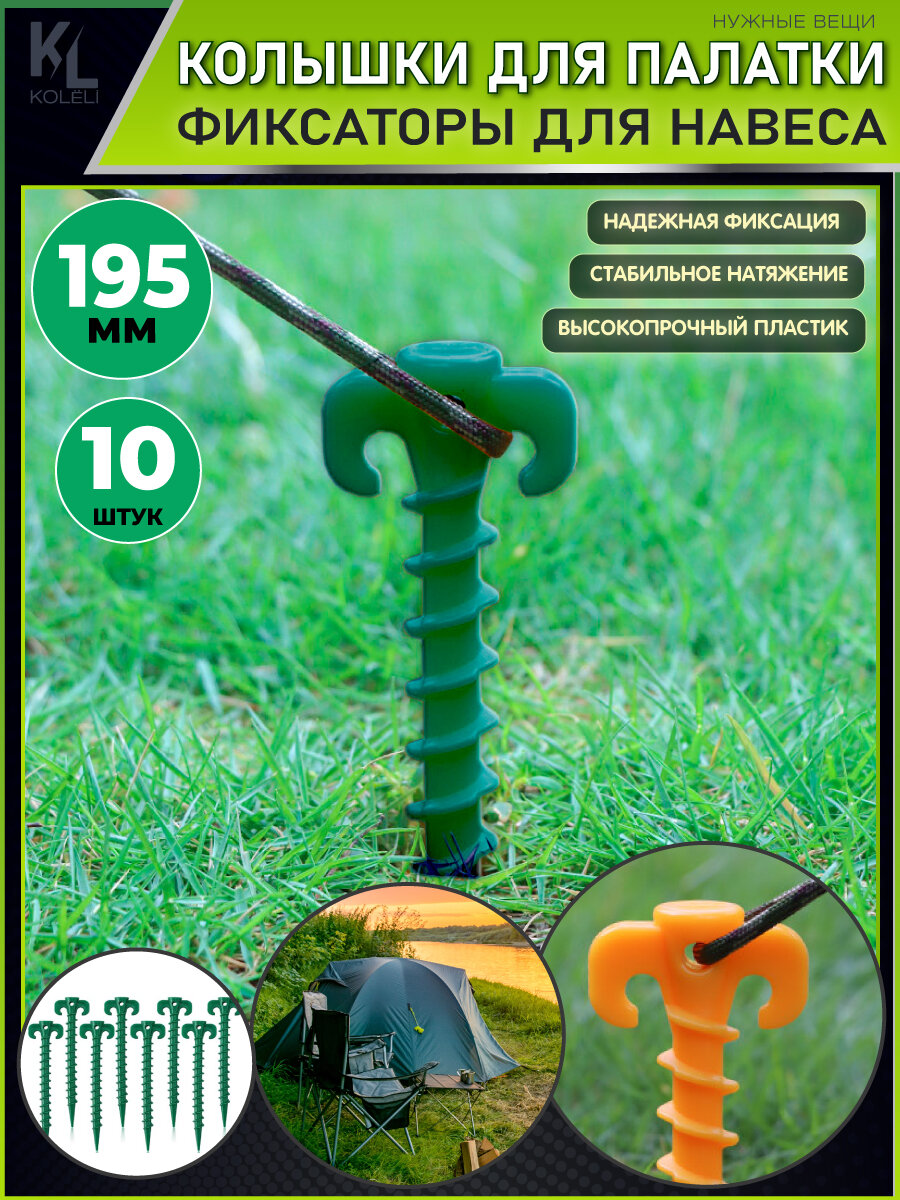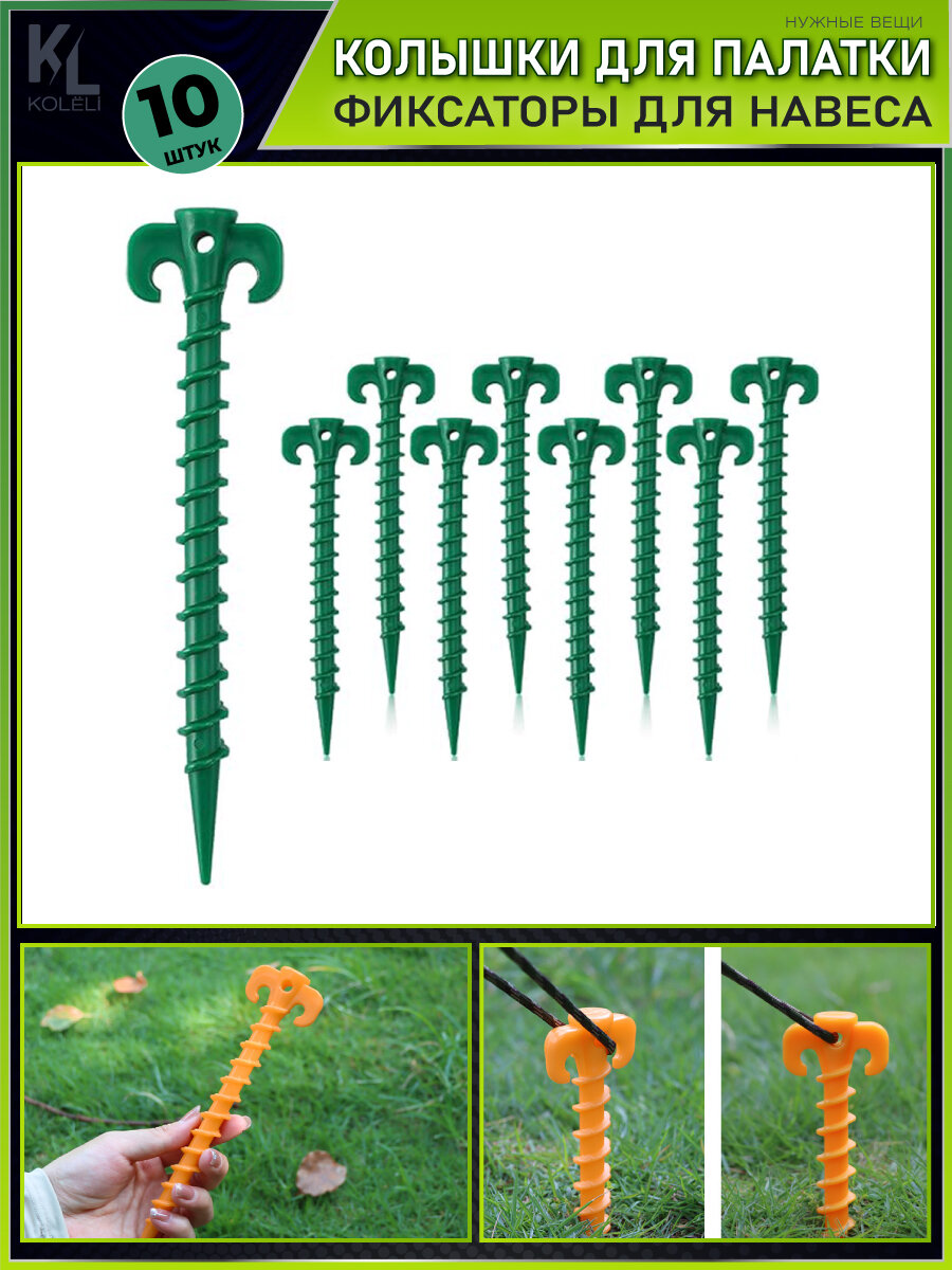 KoLeli / Колышки фиксаторы для палатки и тента, ввинчивающиеся, 10 шт, зеленые интересное: