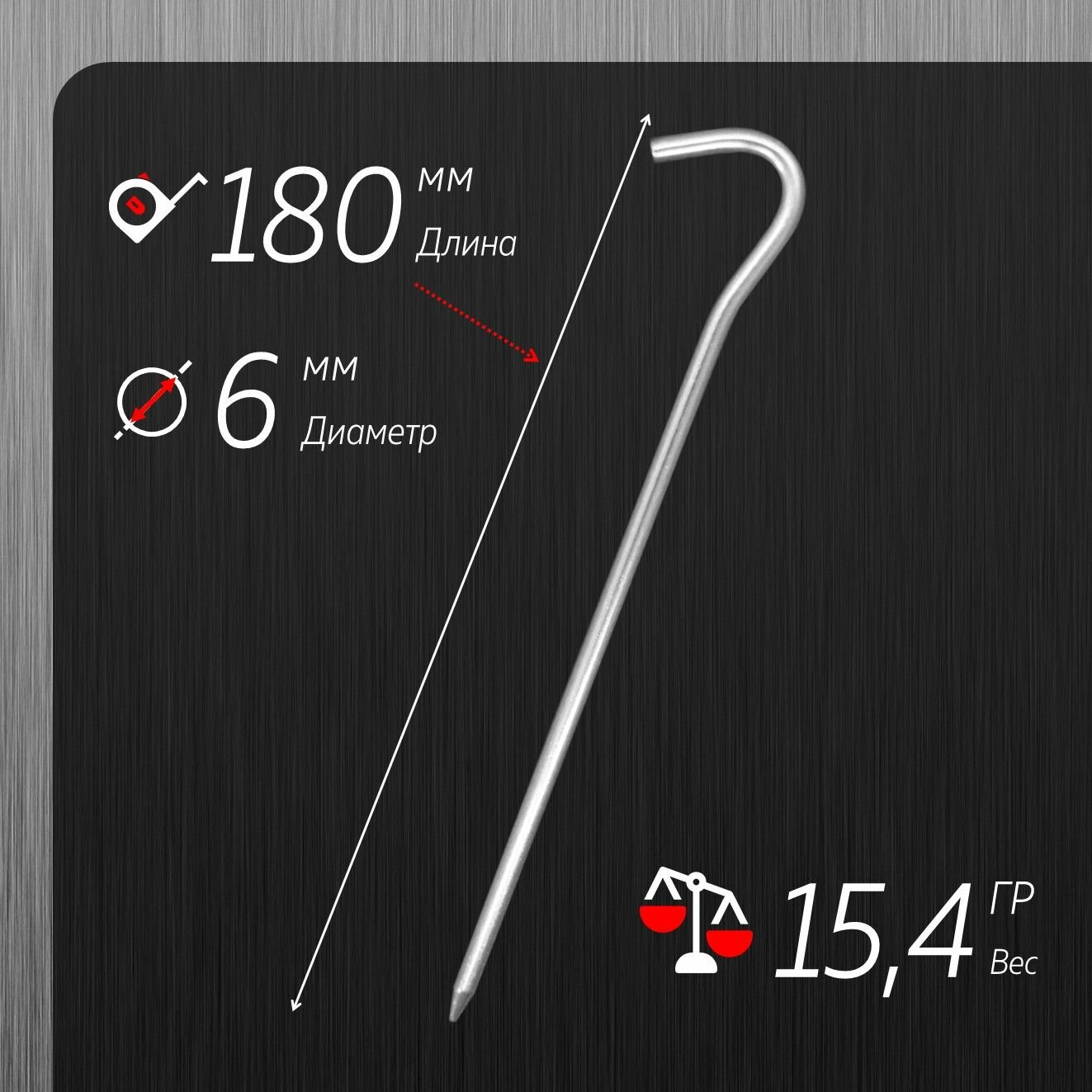 Алюминиевые колышки-крючки для палатки 18 см 20 шт. Цвет Красный
