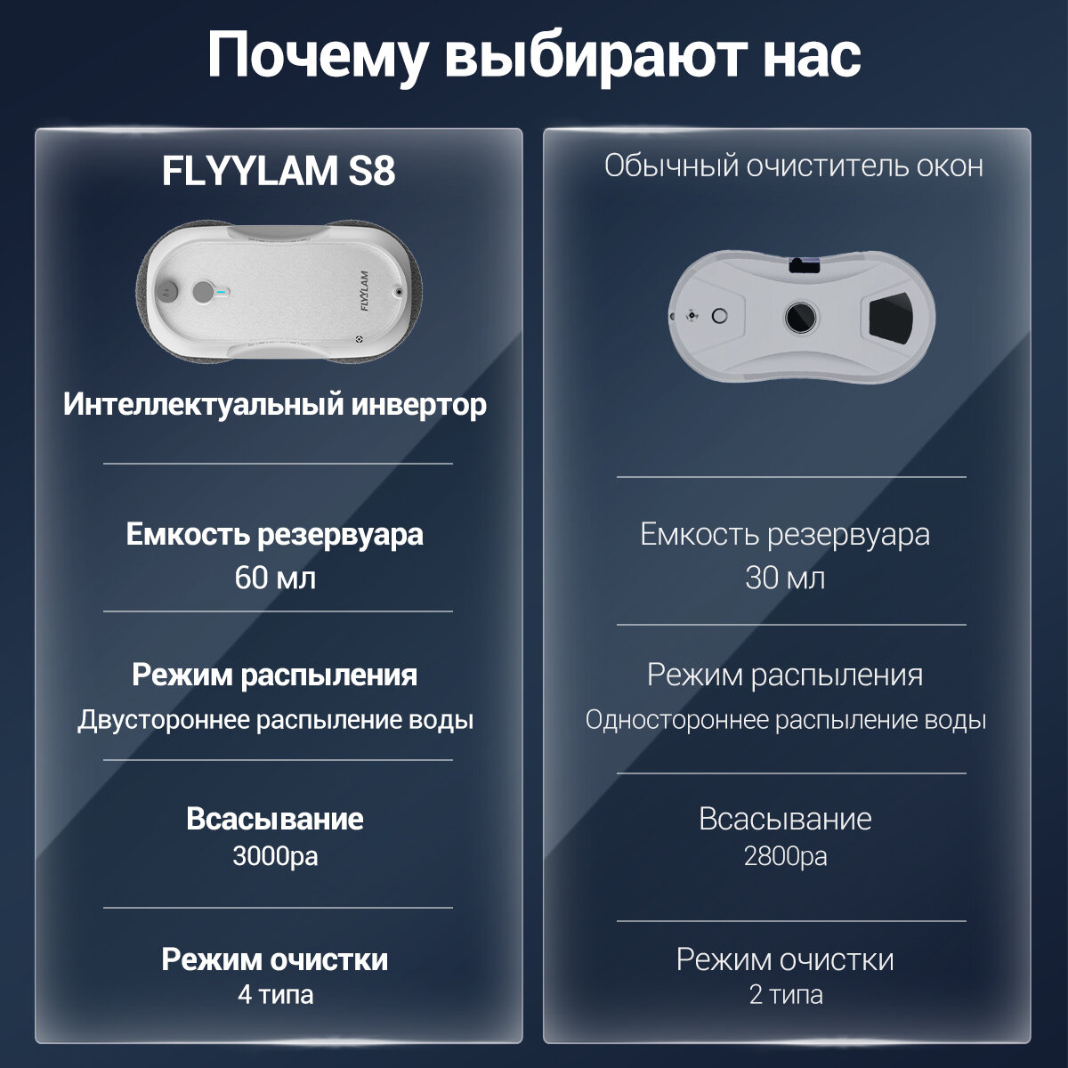 Робот мойщик окон FLYYLAM S8 с двойным распылением,3000Pa интересное: