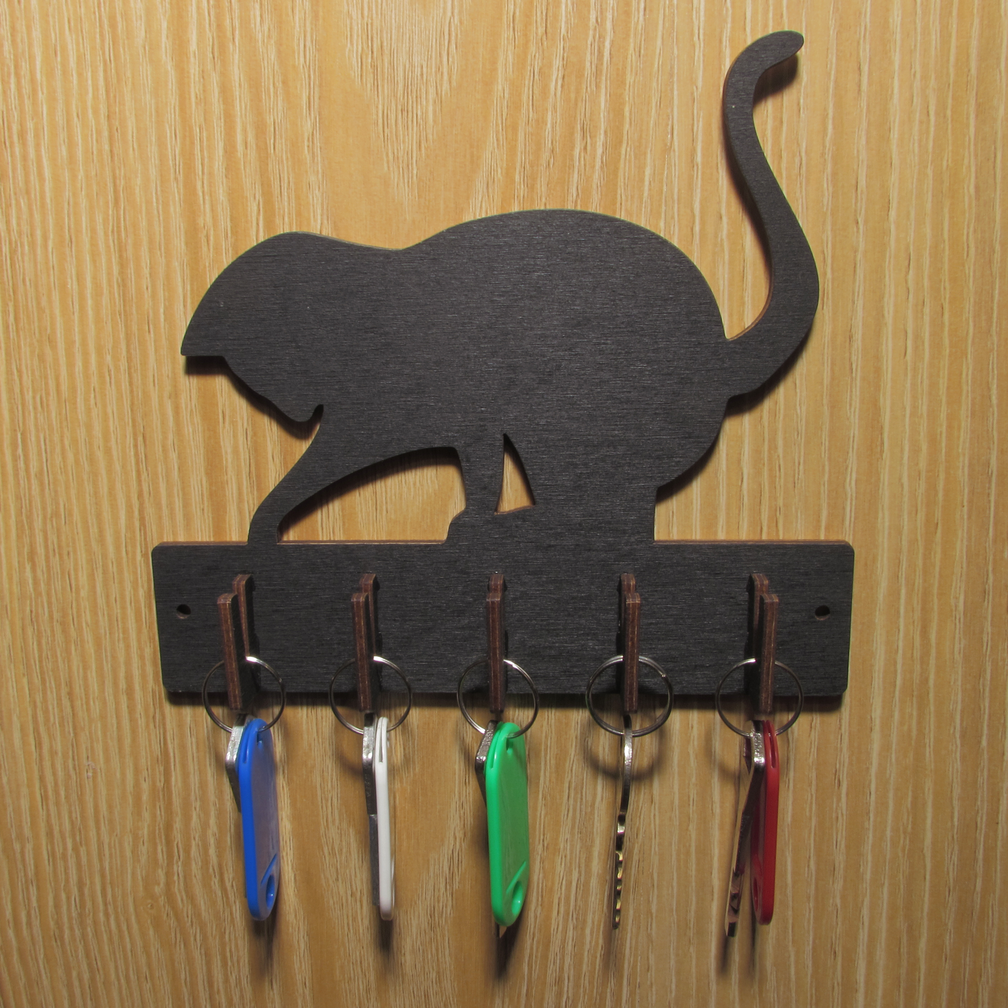 Ключница настенная DOMNATURE "Котики", черная, деревянная, 6 крючков, 21x19 см