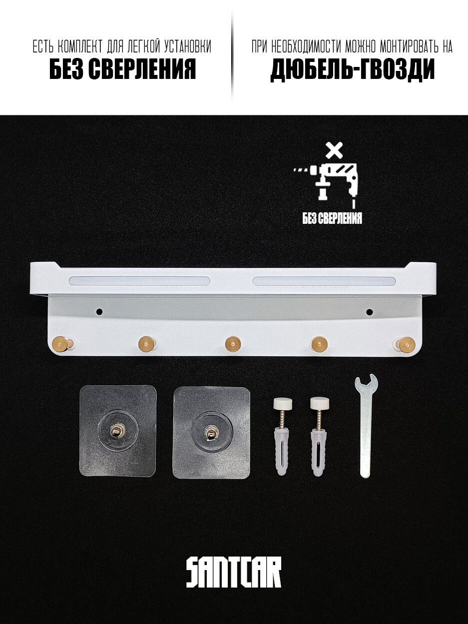 Ключница настенная для прихожей. Полка для дома кухни. Белая с золотистыми крючками. интересное: