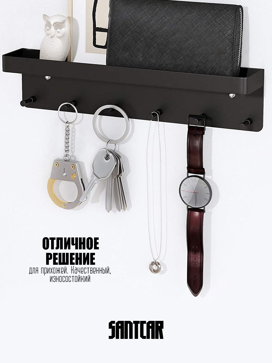 Ключница настенная для прихожей. Полка для дома кухни. Черная. интересное: