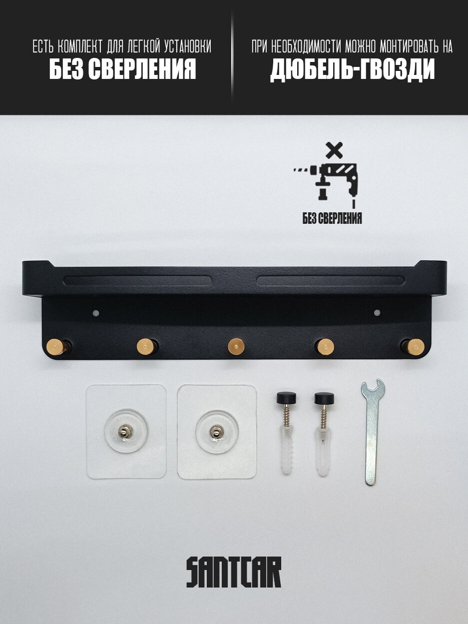 Ключница настенная для прихожей. Полка для дома кухни. Черная с золотистыми крючками. интересное: