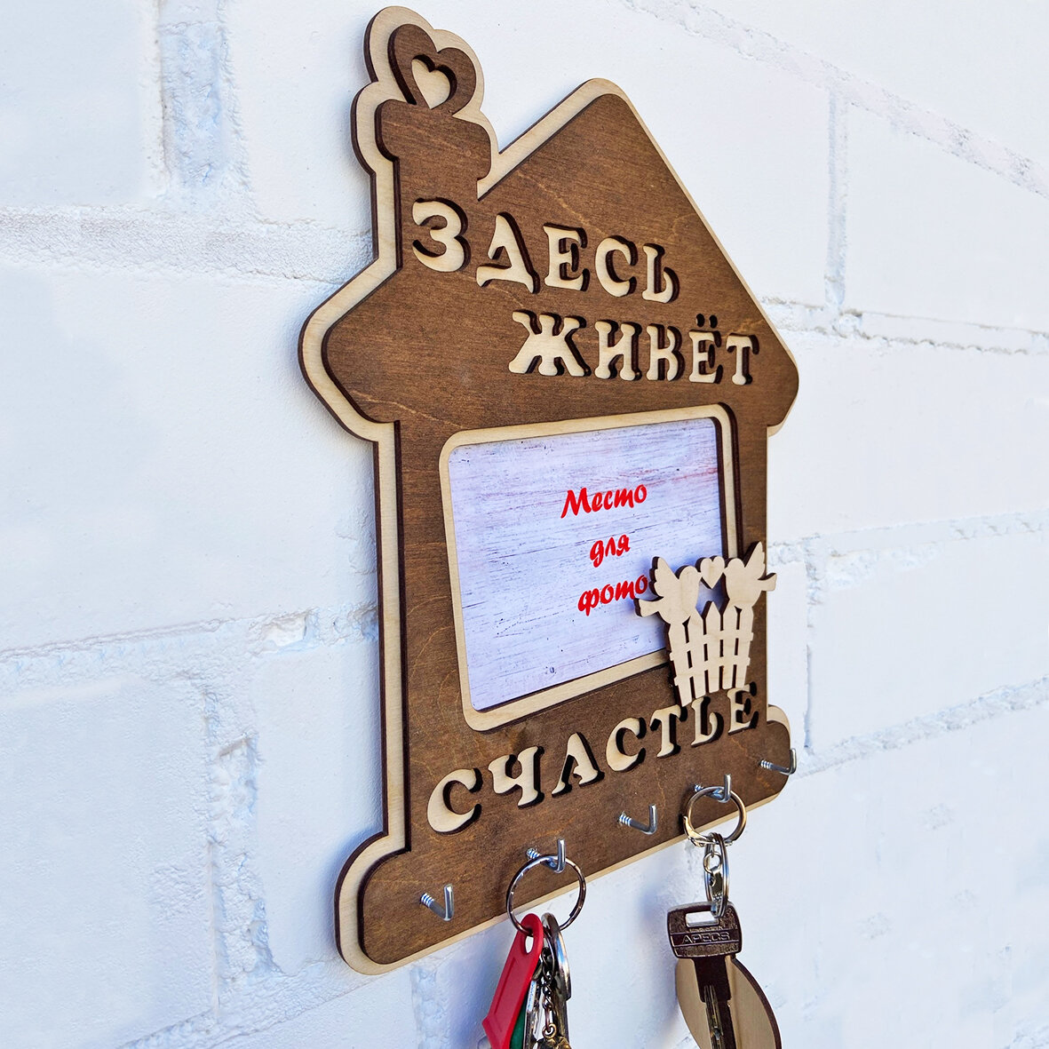 Ключница в форме Домика с Фоторамкой деревянная "Здесь Живёт Любовь" на 5 крючков, размеры 26х21 см интересное: