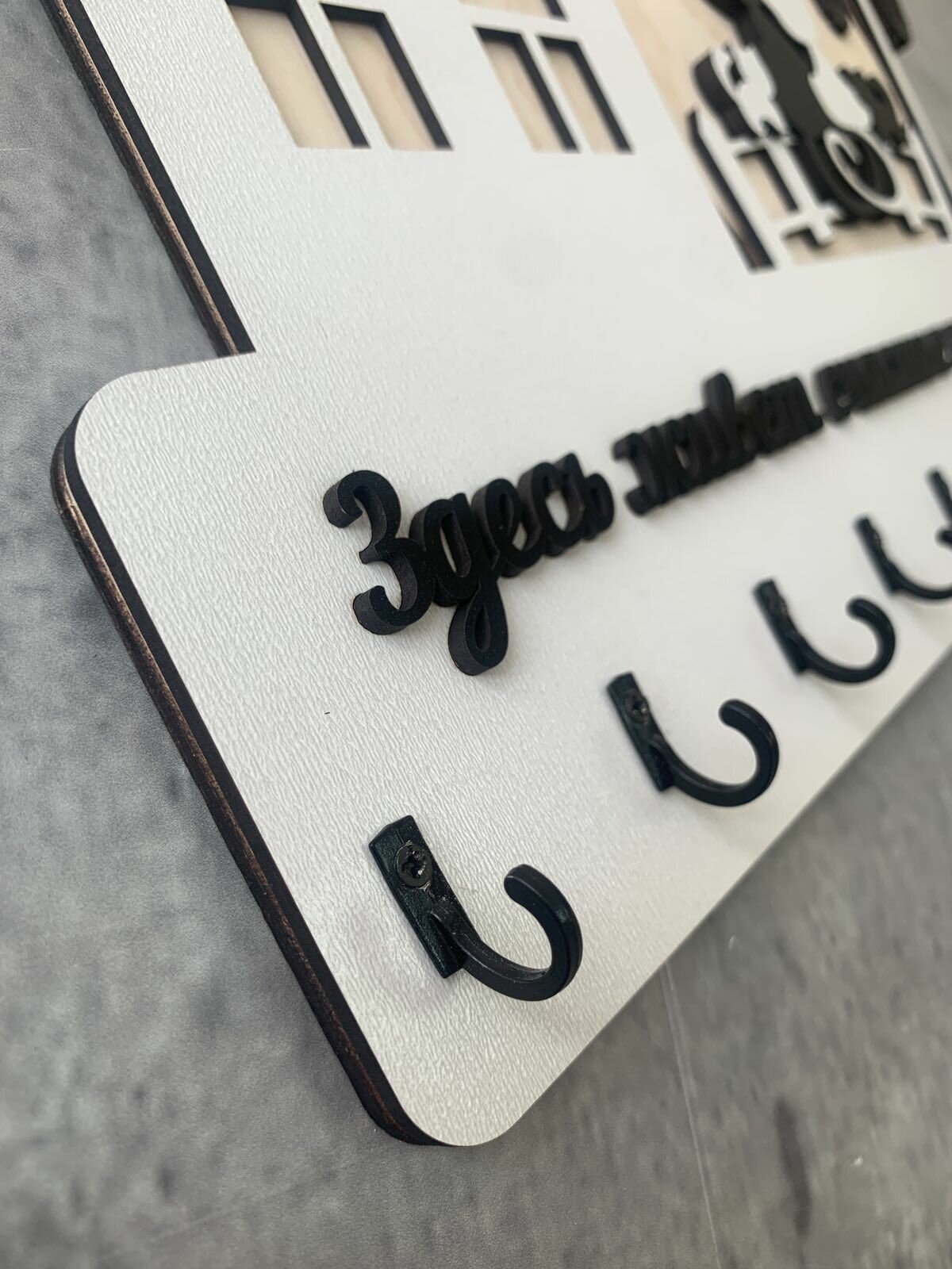 Ключница настенная в прихожую с фамилией именная "Дом Семьи Дмитриевых" на стену