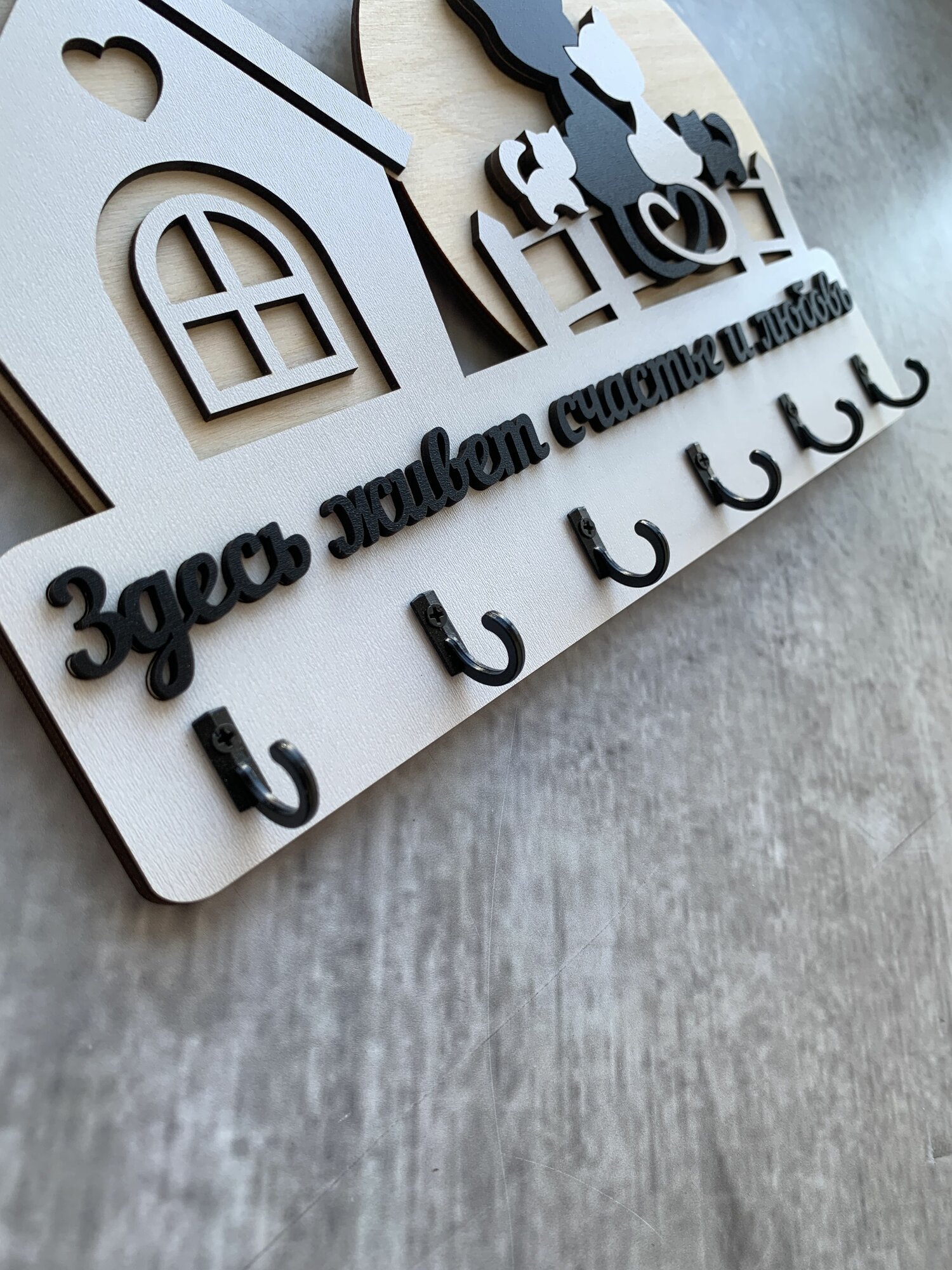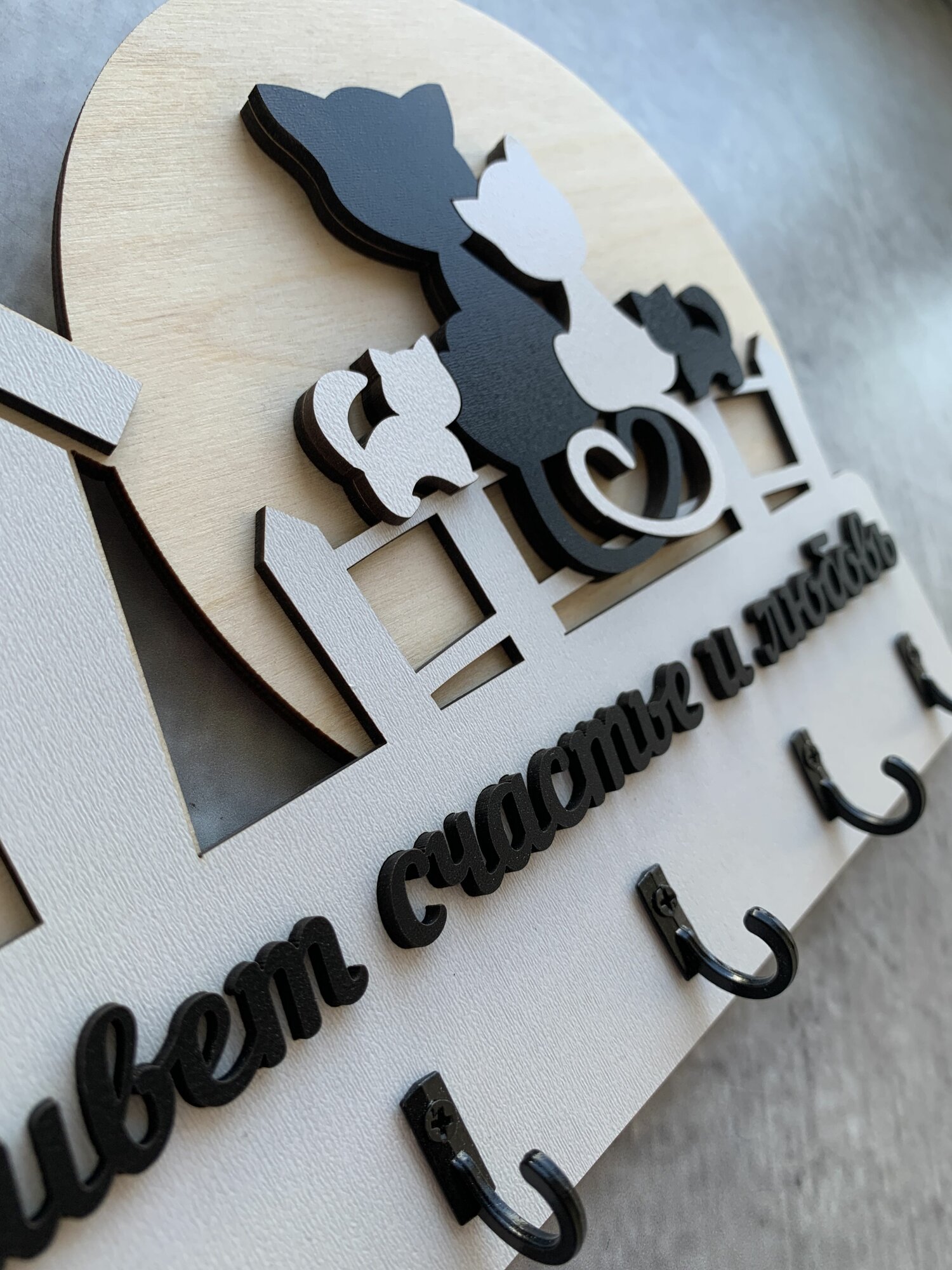 Ключница настенная именная с фамилией "Дом Семьи Шуваловых" в дом с котом и собакой в прихожую в подарок на нвооселье